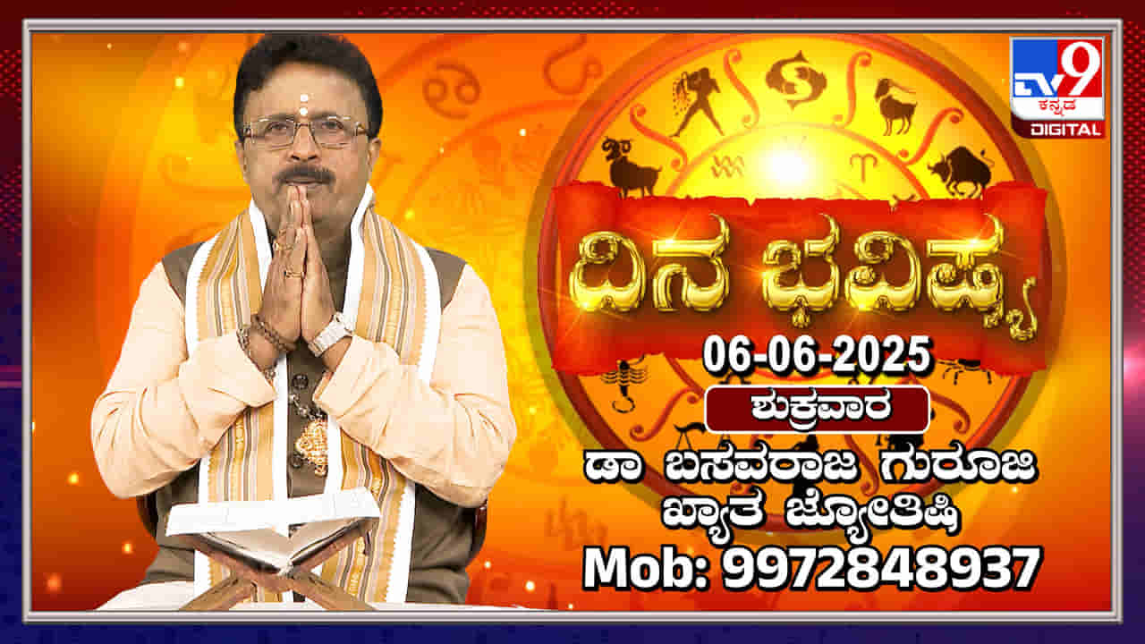 ಜೂನ್ 6 ರಂದು, ಡಾ. ಬಸವರಾಜ ಗುರೂಜಿ ಅವರು 12 ರಾಶಿಗಳ ಭವಿಷ್ಯವನ್ನು ತಿಳಿಸಿದ್ದಾರೆ. ಮೇಷ, ವೃಷಭ, ಮಿಥುನ ಮುಂತಾದ ರಾಶಿಗಳಿಗೆ ಆರ್ಥಿಕ ಲಾಭ, ಉದ್ಯೋಗದಲ್ಲಿ ಏಳಿಗೆ, ಆರೋಗ್ಯ ಸುಧಾರಣೆ ಮುಂತಾದ ಶುಭಫಲಗಳನ್ನು ತಿಳಿಸಲಾಗಿದೆ. ಪ್ರತಿಯೊಂದು ರಾಶಿಗೂ ಅದೃಷ್ಟ ಸಂಖ್ಯೆ, ಶುಭ ದಿಕ್ಕು ಮತ್ತು ಜಪಿಸಬೇಕಾದ ಮಂತ್ರಗಳನ್ನು ಸೂಚಿಸಲಾಗಿದೆ.