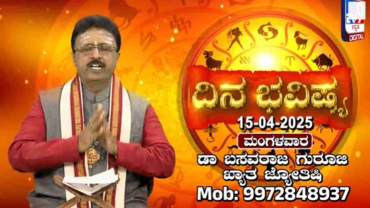 ಇಂದು ತಾರೀಕು 15-04-2025 ಮಂಗಳವಾರ ವಿಶ್ವಾವಸು ಸಂವತ್ಸರ, ಉತ್ತರಾಯಣ, ಚೈತ್ರ ಮಾಸ, ವಸಂತ ಋತು, ಕೃಷ್ಣಪಕ್ಷ, ಬಿದಿಗೆ, ವಿಶಾಖ ನಕ್ಷತ್ರ ಸಿದ್ಧಿಯೋಗ, ಗರಜಕರಣ ಇರತಕ್ಕಂತಹ ಈ ದಿನದ ರಾಹುಕಾಲ 3.25 ರಿಂದ 4.58 ತನಕ ಇರುತ್ತೆ. ಹಾಗೆಯೇ ಸರ್ವಸಿದ್ಧಿ ಕಾಲ, ಸಂಕಲ್ಪ ಕಾಲ, ಶುಭಕಾಲ 12.19 ರಿಂದ 1.53 ನಿಮಿಷ ತನಕ ಇರಲಿದೆ. ದ್ವಾದಶ ರಾಶಿಗಳ ಫಲವನ್ನು ಇಲ್ಲಿ ಖ್ಯಾತ ಜ್ಯೋತಿಷಿ ಮತ್ತು ವಾಸ್ತು ಶಾಸ್ತ್ರಜ್ಞ ಡಾ ಬಸವರಾಜ ಗುರೂಜಿ ಇಲ್ಲಿ ವಿವರಿಸಿದ್ದಾರೆ.