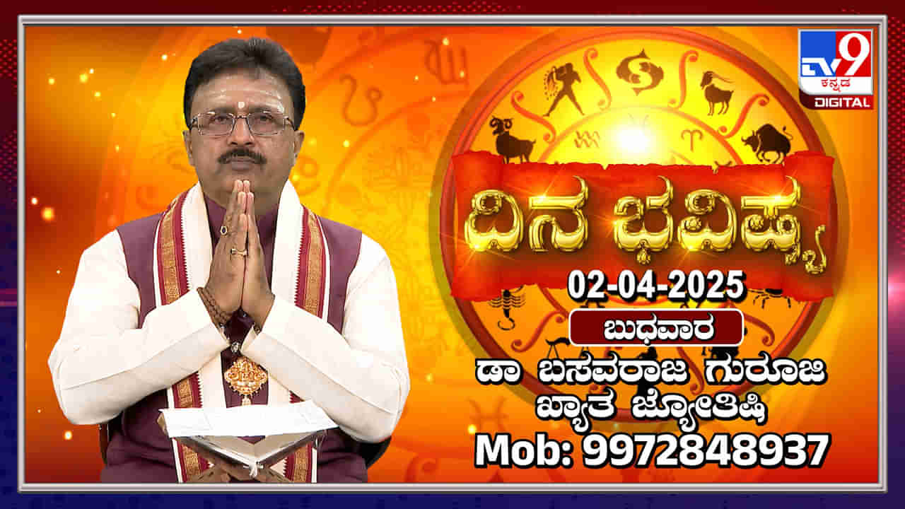 ಏಪ್ರಿಲ್ 2, 2025 ರ ಬುಧವಾರದ ದ್ವಾದಶ ರಾಶಿಗಳ ಫಲಾಫಲಗಳನ್ನು ಖ್ಯಾತ ಜ್ಯೋತಿಷಿ ಮತ್ತು ವಾಸ್ತು ಶಾಸ್ತ್ರಜ್ಞ ಡಾ ಬಸವರಾಜ ಗುರೂಜಿ ವಿಡಿಯೋದಲ್ಲಿ ಮಾಹಿತಿ ನೀಡಿದ್ದಾರೆ. ಪ್ರತಿಯೊಂದು ರಾಶಿಯವರಿಗೂ ಆರ್ಥಿಕ, ವೃತ್ತಿಪರ ಮತ್ತು ವೈಯಕ್ತಿಕ ಜೀವನದಲ್ಲಿ ಏನು ನಿರೀಕ್ಷಿಸಬಹುದು ಎಂಬುದನ್ನು ತಿಳಿಸಲಾಗಿದೆ. ಪ್ರತಿಯೊಂದು ರಾಶಿಗೆ ಅದೃಷ್ಟ ಸಂಖ್ಯೆ ಮತ್ತು ಶುಭ ಬಣ್ಣವನ್ನು ಸೂಚಿಸಲಾಗಿದೆ.