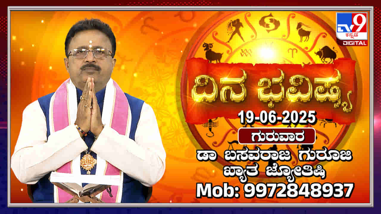 ಬೆಂಗಳೂರು, ಜೂನ್ 19: ಗುರುವಾರದಂದು 12 ರಾಶಿಗಳ ಭವಿಷ್ಯವನ್ನು ಡಾ. ಬಸವರಾಜ ಗುರೂಜಿ ವಿವರಿಸಿದ್ದಾರೆ. ಈ ದಿನ ವಿಶ್ವಾವಸು ಸಂವತ್ಸರದ ಉತ್ತರಾಯಣ, ಗ್ರೀಷ್ಮ ಋತು, ಮಿಥುನ ಸೌರ ಮಾಸ, ಮೃಗಶಿರಾ ಮಹಾನಕ್ಷತ್ರ, ಜ್ಯೇಷ್ಠ ಮಾಸ, ಕೃಷ್ಣ ಪಕ್ಷ, ನವಮೀ ತಿಥಿ. ಪ್ರತಿ ರಾಶಿಯ ಫಲಾಫಲವನ್ನು ವಿಡಿಯೋದಲ್ಲಿ ತಿಳಿಸಿಕೊಡಲಾಗಿದೆ. ವಿಡಿಯೋ ನೋಡಿ.
