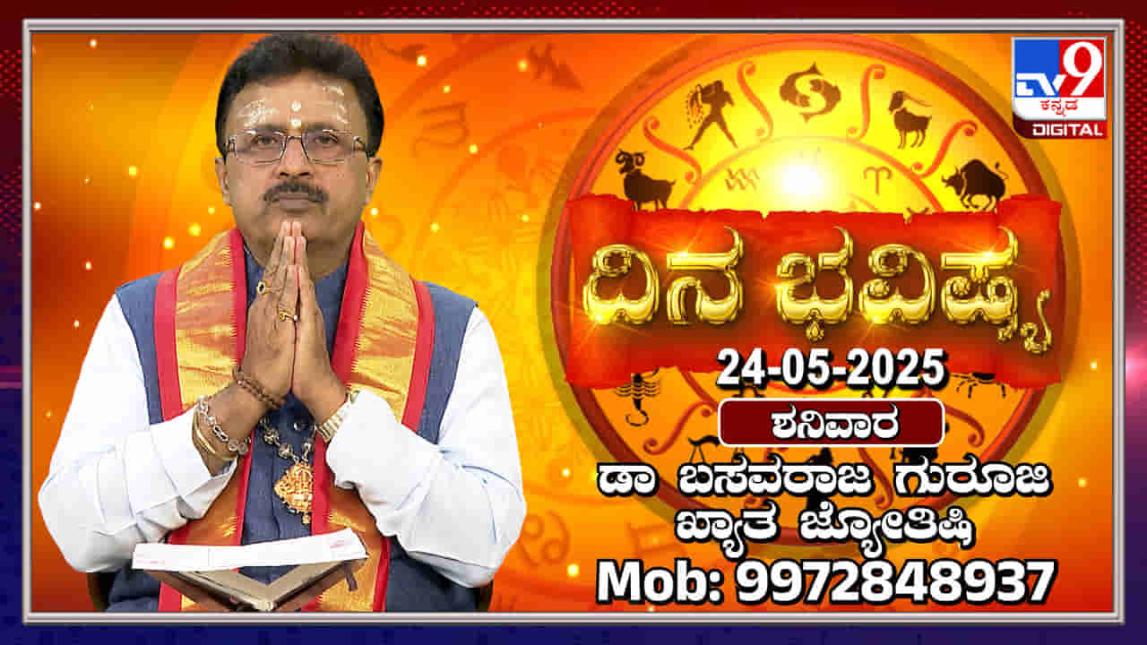 ಬೆಂಗಳೂರು, ಮೇ 24: ಈ ದಿನ ಉತ್ತರಾಯಣ, ವಸಂತ ಋತುವಿನ ವೈಶಾಖ ಮಾಸ ಕೃಷ್ಣ ಪಕ್ಷದ ದ್ವಾದಶೀ ತಿಥಿ, ಶನಿವಾರ, ವಿರೋಧಕ್ಕೆ ಯೋಗ್ಯ ತಿರಸ್ಕಾರ. ಇಂದಿನ ದಿನ ಭವಿಷ್ಯದಲ್ಲಿ ಯಾವ ರಾಶಿಗೆ ಯಾವ ಫಲ ಎಂಬ ಬಗ್ಗೆ ಖ್ಯಾತ ಜ್ಯೋತಿಷಿ ಮತ್ತು ವಾಸ್ತು ಶಾಸ್ತ್ರಜ್ಞ ಡಾ ಬಸವರಾಜ ಗುರೂಜಿ ವಿಡಿಯೋದಲ್ಲಿ ತಿಳಿಸಿಕೊಟ್ಟಿದ್ದಾರೆ. ವಿಡಿಯೋ ನೋಡಿ.