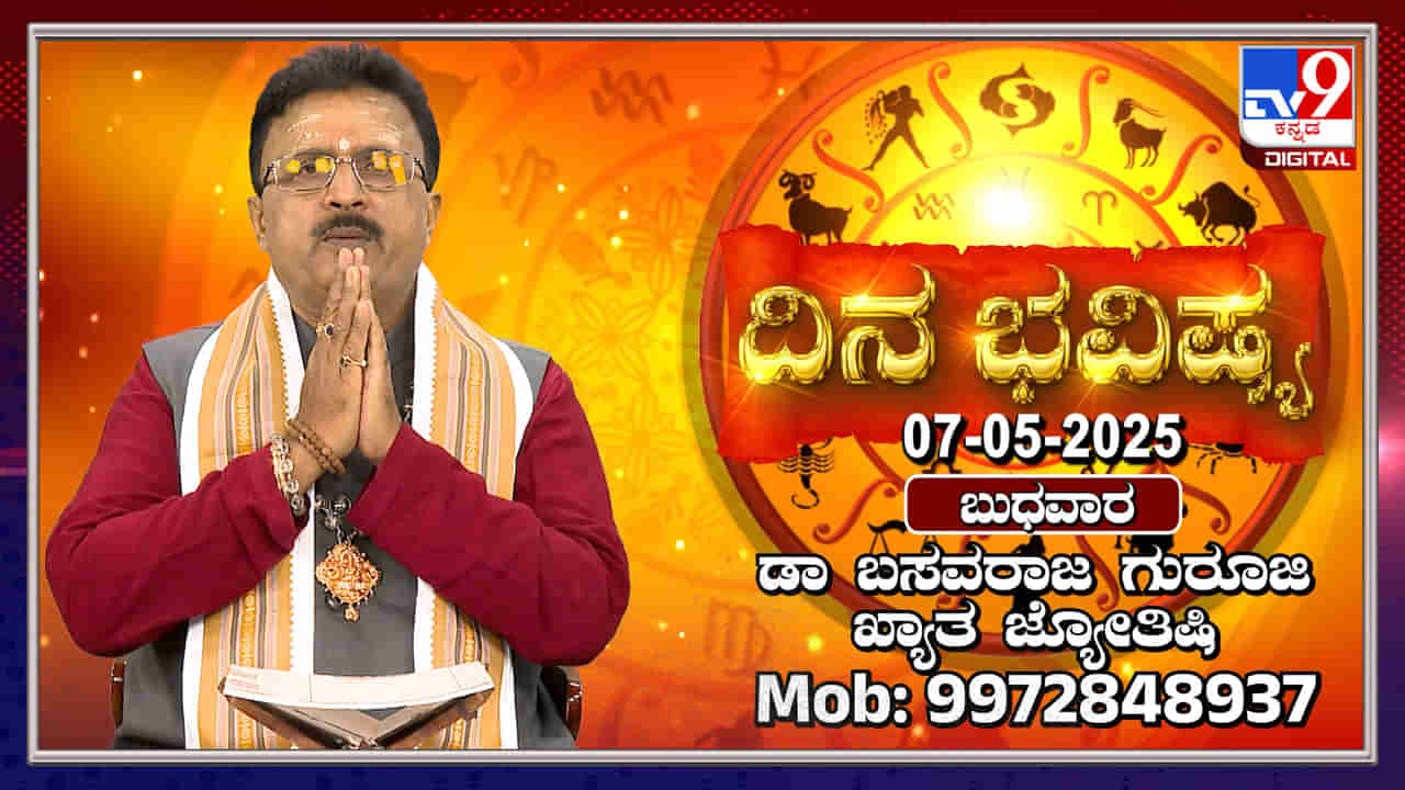 ಮೇ 7, 2025 ರ ದಿನದ ರಾಶಿ ಫಲಗಳನ್ನು ಡಾ. ಬಸವರಾಜ ಗುರೂಜಿ ತಿಳಿಸಿದ್ದಾರೆ. ಮೇಷ ರಾಶಿಯವರಿಗೆ ಆರ್ಥಿಕ ಲಾಭವಿದೆ ಆದರೆ ಕುಟುಂಬದಲ್ಲಿ ವೈಮನಸ್ಸ್ಯ ಇರಬಹುದು. ವೃಷಭ ರಾಶಿಯವರಿಗೆ ಪರಿಶ್ರಮಕ್ಕೆ ತಕ್ಕ ಫಲ ಸಿಗುತ್ತದೆ. ಮಿಥುನ ರಾಶಿಯವರಿಗೆ ಆರ್ಥಿಕವಾಗಿ ಉತ್ತಮ ದಿನವಾಗಿದೆ. ಪ್ರತಿಯೊಂದು ರಾಶಿಗೂ ಅದೃಷ್ಟ ಸಂಖ್ಯೆ ಮತ್ತು ದಿಕ್ಕನ್ನು ಸೂಚಿಸಲಾಗಿದೆ.