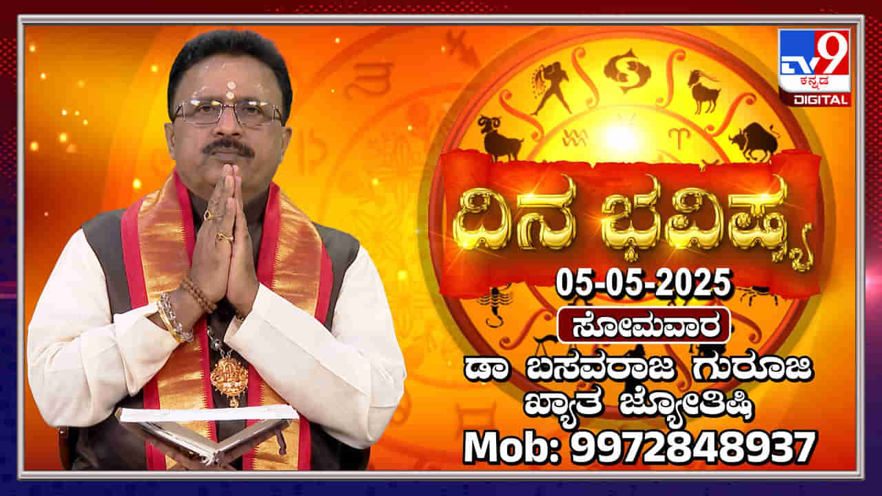 ಡಾ. ಬಸವರಾಜ ಗುರೂಜಿ ಅವರು ಮೇ 5, 2025 ರ ದಿನದ ರಾಶಿ ಫಲಾಫಲಗಳನ್ನು ತಿಳಿಸಿದ್ದಾರೆ. ಮೇಷ, ವೃಷಭ ಮತ್ತು ಮಿಥುನ ರಾಶಿಯವರಿಗೆ ಆರು ಅಥವಾ ಏಳು ಗ್ರಹಗಳ ಶುಭಫಲವಿದೆ. ಪ್ರತಿ ರಾಶಿಗೆ ಅದೃಷ್ಟ ಸಂಖ್ಯೆ, ಶುಭ ಬಣ್ಣ ಮತ್ತು ಜಪಿಸಬೇಕಾದ ಮಂತ್ರವನ್ನು ಸಹ ತಿಳಿಸಿದ್ದಾರೆ. ವಿಡಿಯೋ ನೋಡಿ.