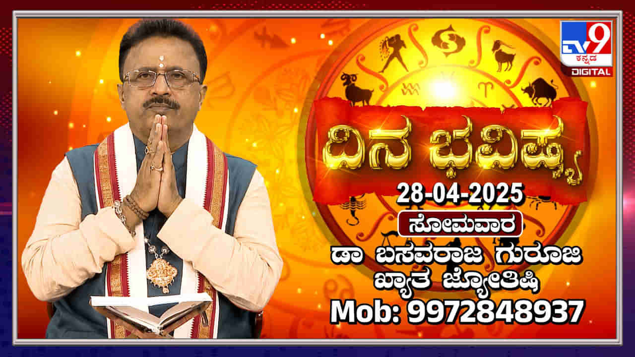 2025 ಏಪ್ರಿಲ್ 28ರ ದಿನದ ರಾಶಿ ಫಲಗಳ ಬಗ್ಗೆ ಗುರೂಜಿ ವಿಡಿಯೋದಲ್ಲಿ ತಿಳಿಸಿಕೊಟ್ಟಿದ್ದಾರೆ. ಮೇಷ, ವೃಷಭ, ಮಿಥುನ, ಕರ್ಕ, ಸಿಂಹ, ಕನ್ಯಾ, ತುಲಾ, ವೃಶ್ಚಿಕ, ಧನುಸ್ಸು, ಮಕರ, ಕುಂಭ ಮತ್ತು ಮೀನ ರಾಶಿಗಳಿಗೆ ಗ್ರಹಗಳ ಪ್ರಭಾವ ಮತ್ತು ಶುಭ-ಅಶುಭ ಫಲಗಳನ್ನು ತಿಳಿಸಲಾಗಿದೆ.