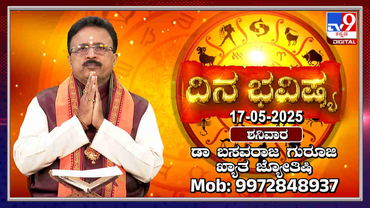 ಮೇ 17, 2025 ರ ದಿನ ಭವಿಷ್ಯವನ್ನು ಡಾ. ಬಸವರಾಜ ಗುರೂಜಿ ಅವರು ವಿವರಿಸಿದ್ದಾರೆ. ಪೂರ್ವಾಷಾಡ ನಕ್ಷತ್ರದ ಪ್ರಭಾವದಿಂದ ಎಲ್ಲಾ 12 ರಾಶಿಗಳ ಮೇಲೆ ಉಂಟಾಗುವ ಪರಿಣಾಮಗಳ ಬಗ್ಗೆ ತಿಳಿಸಿಕೊಡಲಾಗಿದೆ. ಪ್ರತಿಯೊಂದು ರಾಶಿಯವರಿಗೂ ಶುಭ ದಿನವಾಗಲು ಯಾವ ಮಂತ್ರವನ್ನು ಜಪಿಸಬೇಕು ಎಂಬುದನ್ನು ಸಹ ವಿವರಿಸಲಾಗಿದೆ.