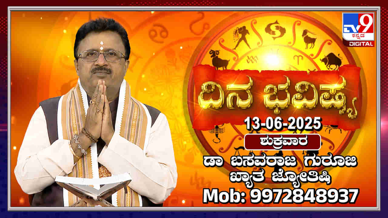 ಜೂನ್ 13, 2025 ರ ದಿನದ ರಾಶಿ ಭವಿಷ್ಯವನ್ನು ಖ್ಯಾತ ಜ್ಯೋತಿಷಿ ಡಾ. ಬಸವರಾಜ ಗುರೂಜಿ ಅವರು ವಿವರಿಸಿದ್ದಾರೆ. ಮೇಷ, ವೃಷಭ ಮತ್ತು ಮಿಥುನ ರಾಶಿಯವರಿಗೆ ಆರ್ಥಿಕ ಲಾಭ ಮತ್ತು ವೃತ್ತಿಪರ ಯಶಸ್ಸುಗಳು ಲಭಿಸಲಿದೆ. ಆದರೆ, ಕೆಲವು ರಾಶಿಯವರಿಗೆ ಸಣ್ಣಪುಟ್ಟ ಆರೋಗ್ಯ ಸಮಸ್ಯೆಗಳು ಮತ್ತು ಕುಟುಂಬದಲ್ಲಿನ ಭಿನ್ನಾಭಿಪ್ರಾಯಗಳ ಬಗ್ಗೆ ಎಚ್ಚರಿಕೆ ನೀಡಲಾಗಿದೆ.