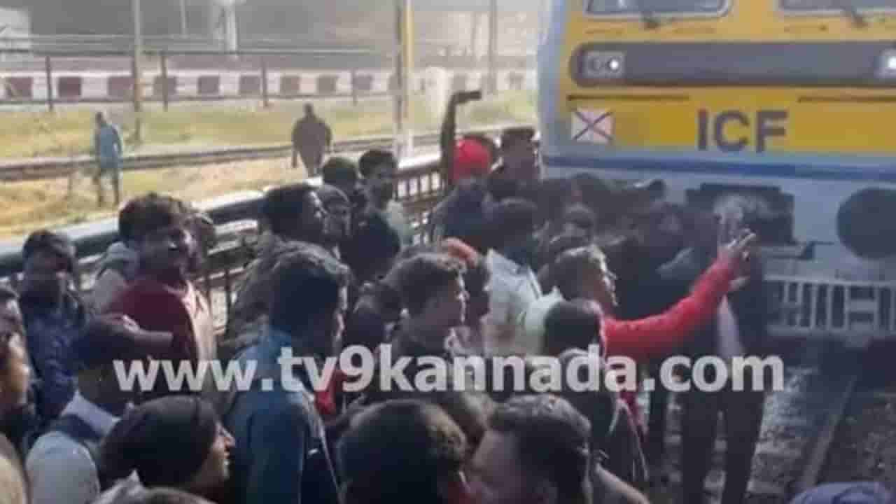ಕೋಚ್ಗಳ ಸಂಖ್ಯೆ ಕಡಿಮೆ ಮಾಡಿದ್ದಕ್ಕೆ ಕೆಜಿಎಫ್-ಬೆಂಗಳೂರು ರೈಲನ್ನು ಬಂಗಾರಪೇಟೆಯಲ್ಲಿ ತಡೆದು ಪ್ರತಿಭಟನೆ
