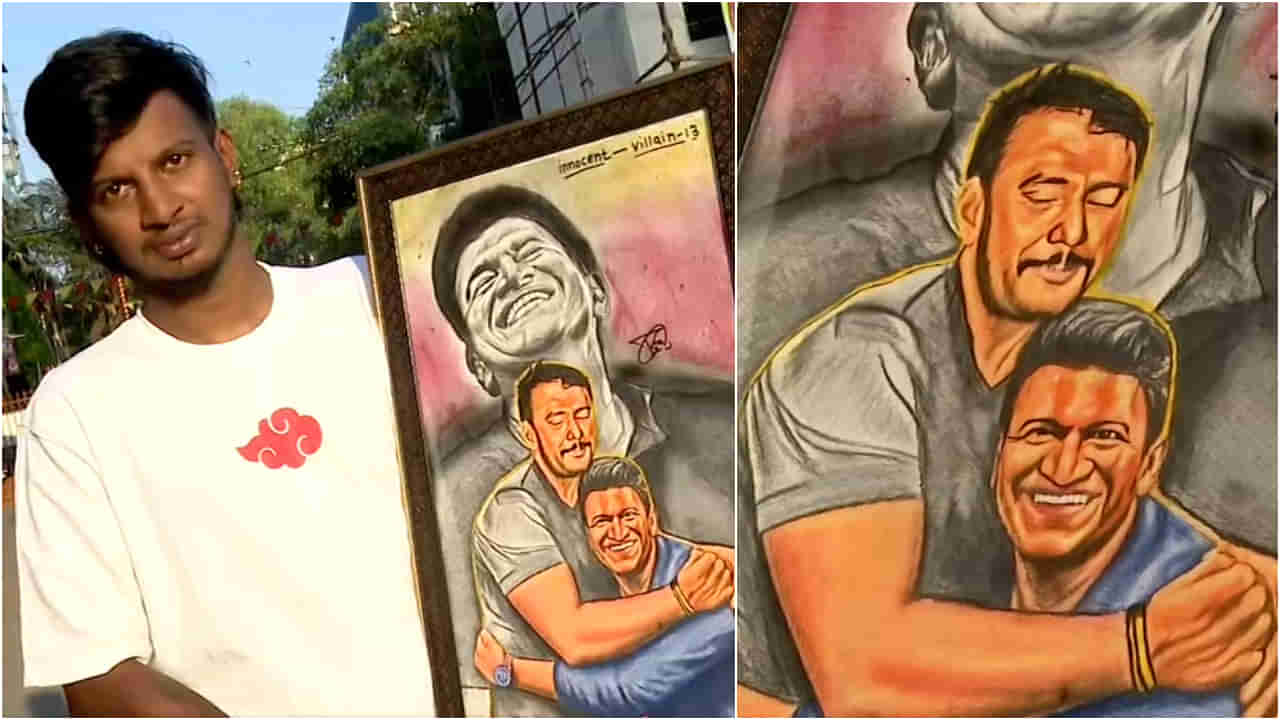 ‘ಅಪ್ಪು’ ಸಿನಿಮಾ ಮರು ಬಿಡುಗಡೆ ಆಗಿದ್ದು, ಬರೀ ಪುನೀತ್ ರಾಜ್ಕುಮಾರ್ ಅಭಿಮಾನಿಗಳು ಮಾತ್ರವಲ್ಲದೇ ಬೇರೆ ನಟರ ಅಫ್ಯಾನ್ಸ್ ಸಹ ಈ ಸಿನಿಮಾಗೆ ಪ್ರೋತ್ಸಾಹ ನೀಡಿದ್ದಾರೆ. ದರ್ಶನ್ ಅವರ ಫ್ಯಾನ್ಸ್ ಕೂಡ ಬಂದು ‘ಅಪ್ಪು’ ಚಿತ್ರವನ್ನು ವೀಕ್ಷಿಸುತ್ತಿದ್ದಾರೆ. ವಿಶೇಷ ಕಲಾಕೃತಿ ರಚಿಸಿದ ಅಭಿಮಾನಿಯೊಬ್ಬರು ದರ್ಶನ್ ಮತ್ತು ಪುನೀತ್ ಬಗ್ಗೆ ಮಾತನಾಡಿದ್ದಾರೆ.