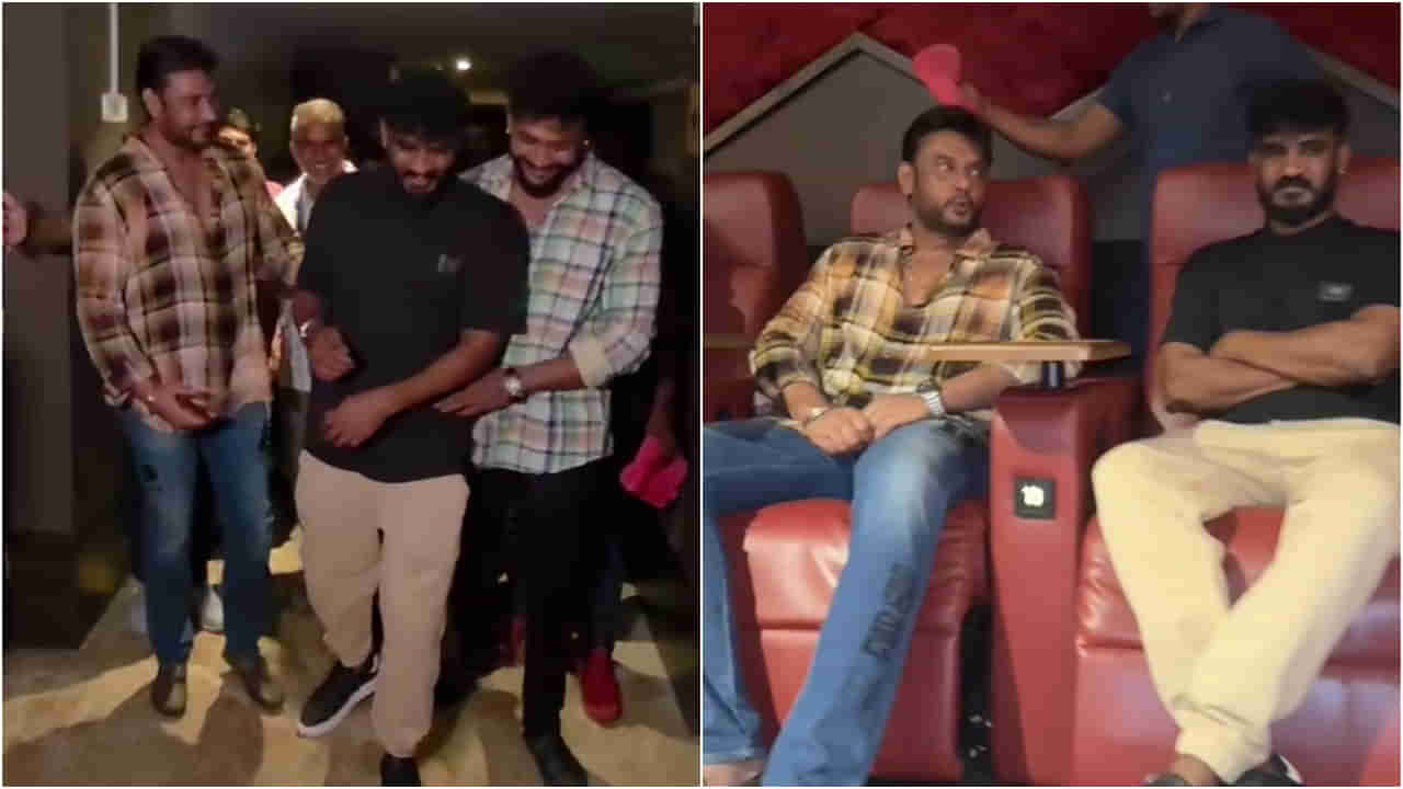 ನಟ ದರ್ಶನ್ ಅವರು ಬೆನ್ನು ನೋವಿನಿಂದ ಬಳಲುತ್ತಿದ್ದಾರೆ. ಅದರ ನಡುವೆಯೂ ಅವರು ‘ವಾಮನ’ (Vaamana) ಸಿನಿಮಾದ ಪ್ರೀಮಿಯರ್ ಶೋಗೆ ಹಾಜರಿ ಹಾಕಿದ್ದಾರೆ. ಇದು ಧನ್ವೀರ್ ಗೌಡ (Dhanveer Gowda) ನಟನೆಯ ಸಿನಿಮಾ. ಆದ್ದರಿಂದ ಅವರು ಸಪೋರ್ಟ್ ಮಾಡಲು ಬಂದಿದ್ದಾರೆ. ದರ್ಶನ್ ಅವರು ಬಂದ ಕೂಡಲೇ ಅಭಿಮಾನಿಗಳು ಮುತ್ತಿಕೊಂಡರು. ಡಿ ಬಾಸ್ ಎಂದು ಜೈಕಾರ ಕೂಗಲು ಆರಂಭಿಸಿದರು. ಕುಂಟುತ್ತಲೇ ಸಾಗಿದ ದರ್ಶನ್ (Darshan) ಅವರು ಚಿತ್ರತಂಡದ ಜೊತೆ ಕುಳಿತು ‘ವಾಮನ’ ಸಿನಿಮಾ ನೋಡಿದರು. ಈ ಚಿತ್ರ ಏಪ್ರಿಲ್ 10ರಂದು ರಾಜ್ಯದ್ಯಂತ ಬಿಡುಗಡೆ ಆಗುತ್ತಿದೆ.
