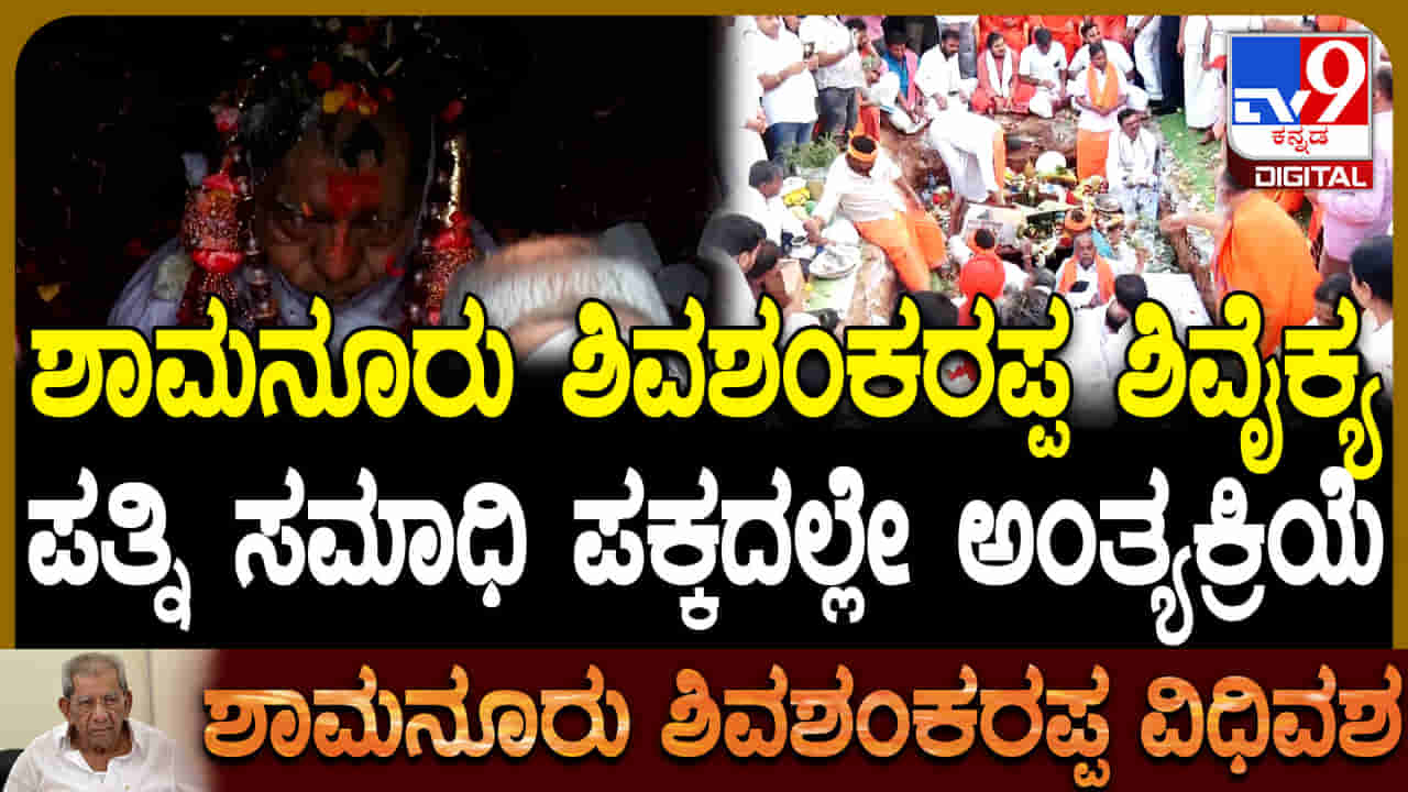 ದಾವಣಗೆರೆ, ಡಿಸೆಂಬರ್ 15: ದಾವಣಗೆರೆಯ ಧಣಿ ಅಂತಾನೇ ಕರೆಸಿಕೊಳ್ಳುತ್ತಿದ್ದ ಶಾಮನೂರು ಶಿವಶಂಕರಪ್ಪ (Shamanur Shivashankarappa) ಅವರು ತಮ್ಮ ಸುಧೀರ್ಘ, ಸಾರ್ಥಕ ಬದುಕಿನ ಪಯಣ ಅಂತ್ಯಗೊಳಿಸಿದ್ದಾರೆ. ಇಂದು ನಗರದ ಕಲ್ಲೇಶ್ವರ ಮಿಲ್ ಆವರಣದಲ್ಲಿ ಪಂಚಪೀಠದ ಜಗದ್ಗುರುಗಳ ಸಮ್ಮುಖದಲ್ಲಿ ಪತ್ನಿ ಸಮಾಧಿ ಪಕ್ಕದಲ್ಲೇ ಅಂತ್ಯಕ್ರಿಯೆ ಮಾಡಲಾಗಿದೆ. ಇನ್ನು ಡಿಸೆಂಬರ್ 26ರಂದು ಮಧ್ಯಾಹ್ನ 12.30ಕ್ಕೆ ಕಲ್ಲೇಶ್ವರ ಮಿಲ್ ಆವರಣದಲ್ಲೇ ಕೈಲಾಸ ಶಿವಗಣಾರಾಧನೆ ನಡೆಯಲಿದೆ. ಶಾಮನೂರು ಶಿವಶಂಕರಪ್ಪ ಅವರ ಪುತ್ರರಾದ ಬಕ್ಕೇಶ್, ಗಣೇಶ್ ಮತ್ತು ಮಲ್ಲಿಕಾರ್ಜುನ್ ಕುಟುಂಬಸ್ಥರಿಂದ ಆಹ್ವಾನಿಸಲಾಗಿದೆ.