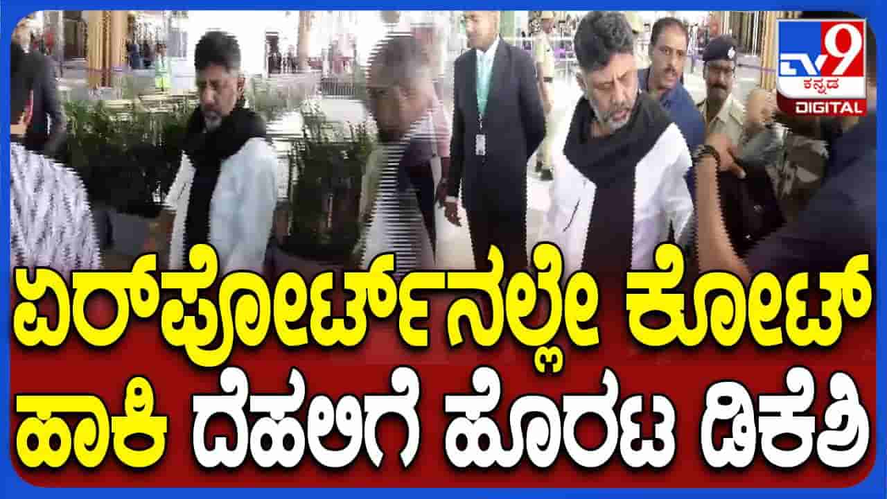 ಧಾವಂತದಲ್ಲಿ ದೆಹಲಿಗೆ ತೆರಳಿದ ಡಿಸಿಎಂ ಡಿಕೆ ಶಿವಕುಮಾರ್ ವಿಮಾನ ನಿಲ್ದಾಣದಲ್ಲಿ ಕೋಟು ತೊಟ್ಟರು