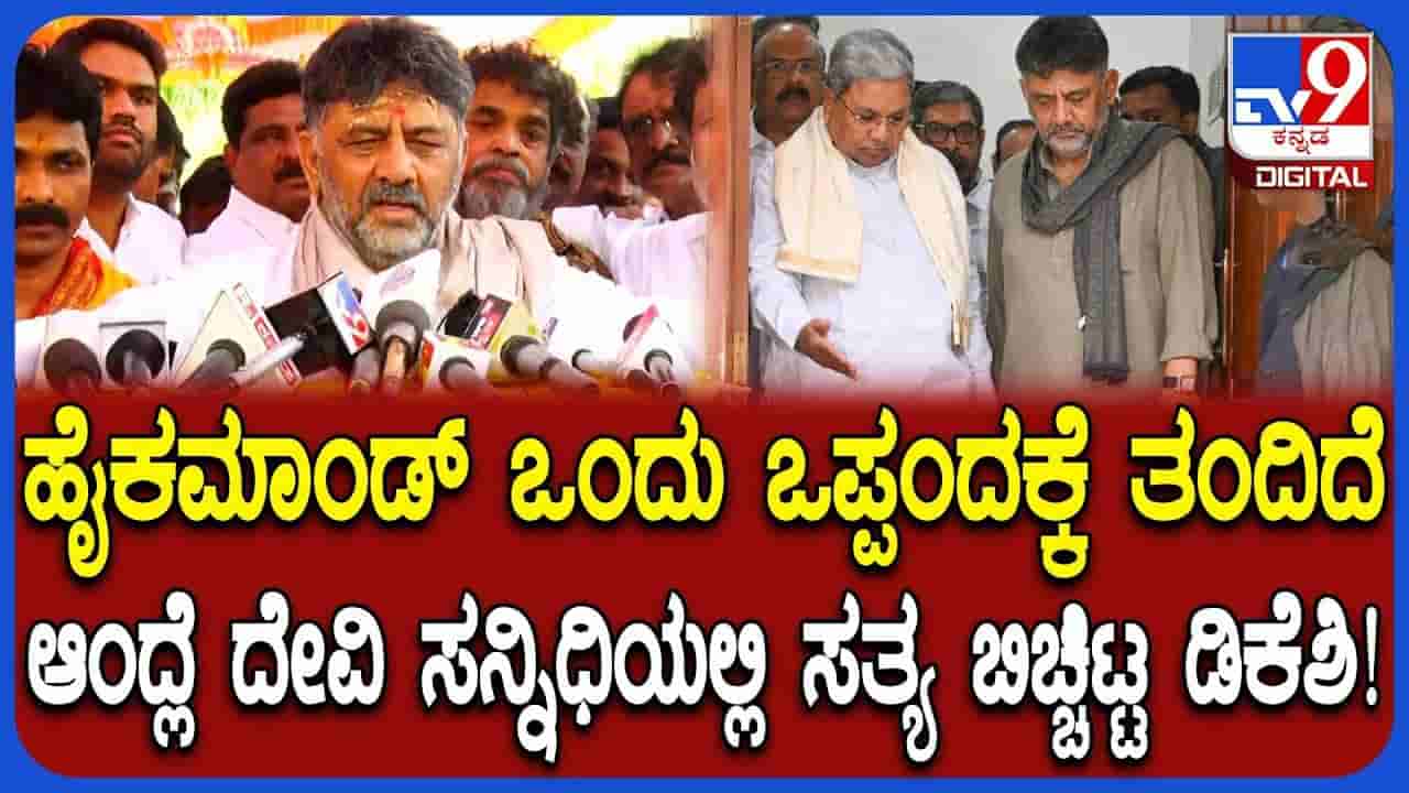 ಬಳಿಕ ಮಾಧ್ಯಮಗಳಿಗೆ ಪ್ರತಿಕ್ರಿಯಿಸಿದ ಡಿಕೆ ಶಿವಕುಮಾರ್, ನಾನು ಯಾವತ್ತೂ ಅವರು 5 ವರ್ಷ ಇರಲ್ಲ ಎಂದು ಹೇಳಿಲ್ಲ. ಹೈಕಮಾಂಡ್ ಅವರ ಪರವಾಗಿಲ್ಲವೆಂದು ಕೂಡ ನಾನು ಹೇಳಿಲ್ಲ. ಅವರ ಪರವಾಗಿ ಹೈಕಮಾಂಡ್ ಇರುವುದಕ್ಕೆ ಸಿಎಂ ಆಗಿರೋದು. ನಾನು ಅವರು ಇಬ್ಬರು ಒಂದ ಒಪ್ಪಂದಕ್ಕೆ ಬಂದಿದ್ದೇವೆ. ಹೈಕಮಾಂಡ್ ಕೂಡ ಒಂದು ಒಪ್ಪಂದಕ್ಕೆ ತಂದಿದೆ ಎಂದು ಸ್ಫೋಟಕ ಹೇಳಿಕೆ ನೀಡಿದ್ದಾರೆ. ಡಿಕೆಶಿ ಅವರ ಈ ಹೇಳಿಕೆ ರಾಜ್ಯ ರಾಜಕಾರಣದಲ್ಲಿ ಸಂಚಲನ ಮೂಡಿಸಿದೆ. ಹಾಗಾದ್ರೆ, ಹೈಕಮಾಂಡ್ ತಂದಿರುವ ಒಪ್ಪಂದ ಏನು ಎನ್ನುವುದೇ ನಿಗೂಢವಾಗಿದ್ದು, ಕಾಂಗ್ರೆಸ್ನಲ್ಲಿ ಚರ್ಚೆಗೆ ಗ್ರಾಸವಾಗಿದೆ.