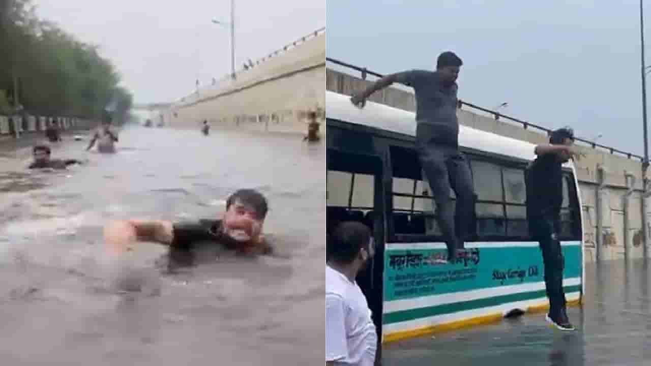 ಮಳೆ ನೀರು ತುಂಬಿದ ದೆಹಲಿಯ ಹೈವೇಯಲ್ಲಿ ಈಜಿದ ಯುವಕರು