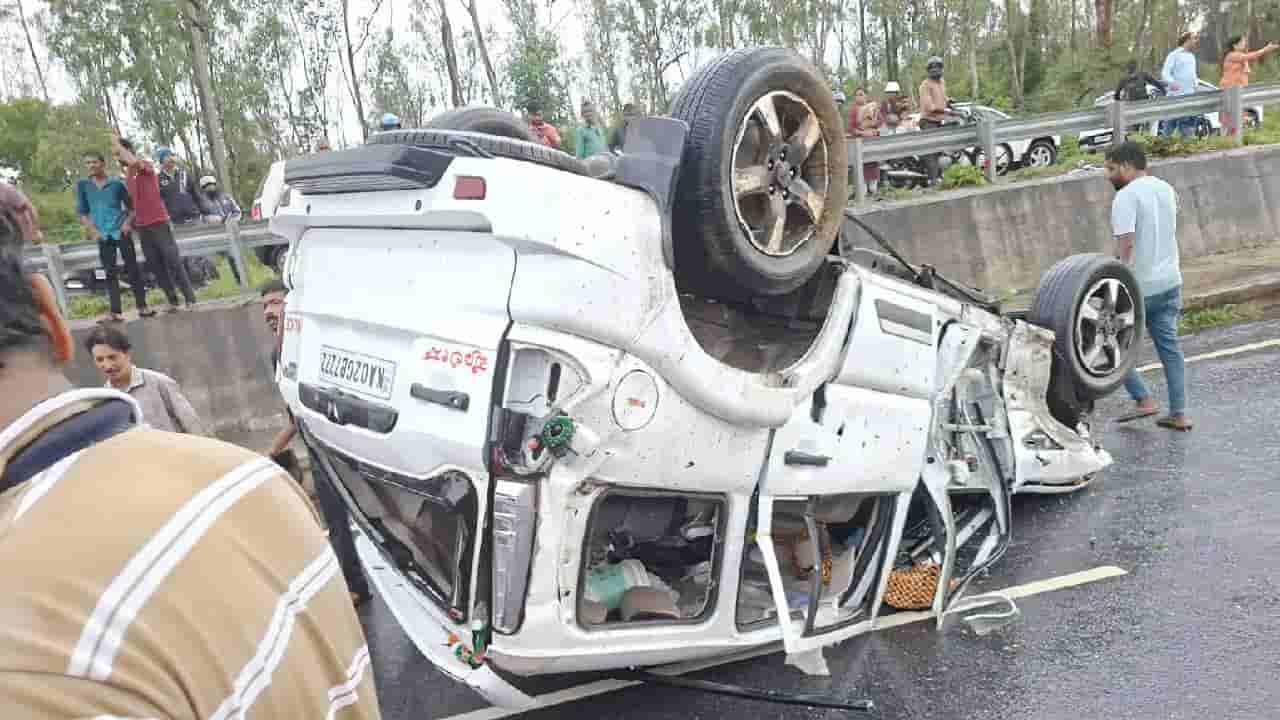 ಮಂಡ್ಯ, ಜುಲೈ 19: ಮೈಸೂರಿನಲ್ಲಿ ನಡೆದ ಸಾಧನಾ ಸಮಾವೇಶ ಕಾರ್ಯಕ್ರಮ ಮುಗಿಸಿ ವಾಪಸ್ ಬೆಂಗಳೂರಿಗೆ ಬರುತ್ತಿದ್ದ ಉಪಮುಖ್ಯಮಂತ್ರಿ ಡಿ.ಕೆ.ಶಿವಕುಮಾರ್ (DK Shivakumar) ಅವರ ಬೆಂಗಾವಲು ವಾಹನ (Escort vehicle) ಪಲ್ಟಿಯಾಗಿದೆ. ವಾಹನದಲ್ಲಿದ್ದ ಇಬ್ಬರು ಸಿಬ್ಬಂದಿಗೆ ಸಣ್ಣಪುಟ್ಟ ಗಾಯವಾಗಿದ್ದು, ಪ್ರಾಣಾಪಾಯದಿಂದ ಪಾರಾಗಿದ್ದಾರೆ. ಮಂಡ್ಯ ಜಿಲ್ಲೆಯ ಶ್ರೀರಂಗಪಟ್ಟಣ ವ್ಯಾಪ್ತಿಯ ಗೌಡಹಳ್ಳಿ ಟಿಎಂ ಹೊಸೂರು ಬಳಿಯ ಬೆಂಗಳೂರು-ಮೈಸೂರು ಎಕ್ಸ್ಪ್ರೆಸ್ವೇಯಲ್ಲಿ ಘಟನೆ ನಡೆದಿದೆ. ಬೆಂಗಾವಲು ವಾಹನ ಡಿವೈಡರ್ ಡಿಕ್ಕಿಯಾಗಿ ಪಲ್ಟಿಯಾಗಿದೆ. ಬೆಂಗಾವಲು ವಾಹನದಲ್ಲಿದ್ದ ಇಬ್ಬರನ್ನು ಮೈಸೂರು ಆಸ್ಪತ್ರೆಗೆ ದಾಖಲಿಸಲಾಗಿದೆ.