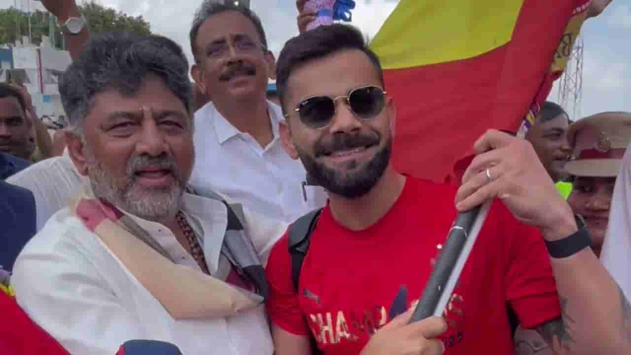 Bengaluru RCB Celebration: ಕೊಹ್ಲಿ ಆ್ಯಂಡ್ ಟೀಂಗೆ ಕನ್ನಡ ಧ್ವಜ ನೀಡಿ ಸ್ವಾಗತಿಸಿದ ಡಿಕೆ ಶಿವಕುಮಾರ್: ವಿಡಿಯೋ ನೋಡಿ