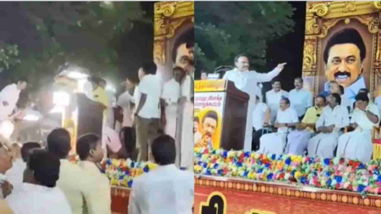 Video: ಡಿಎಂಕೆ ಸಂಸದ ರಾಜಾ ಭಾಷಣ ಮಾಡುವಾಗ ಬಿದ್ದ ಫೆಡ್ಲೈಟ್ ಕಂಬ