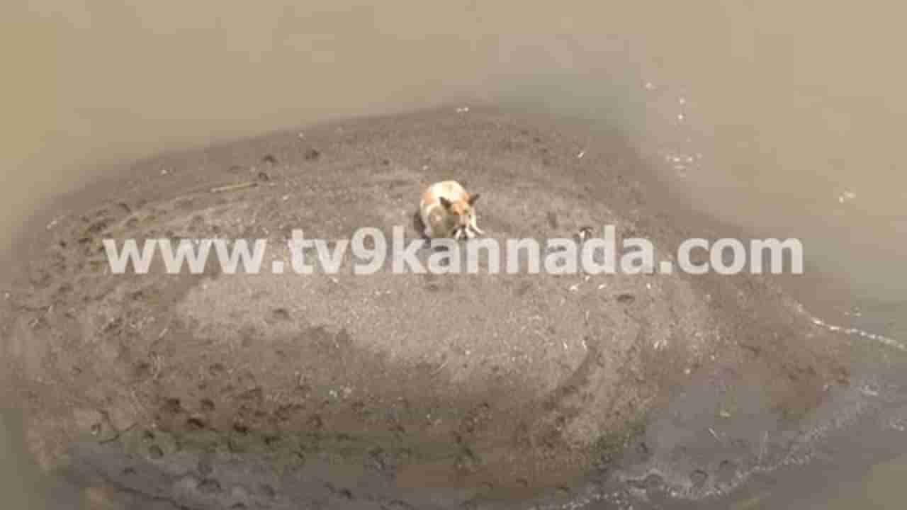 ಬೆಣ್ಣೆಹಳ್ಳ ಸೃಷ್ಟಿಸಿರುವ ಚಿಕ್ಕ ನಡುಗಡ್ಡೆಯಲ್ಲಿ ಸಿಲುಕಿರುವ ನಾಯಿಯ ಪಾಡು ಯಾರಿಗೂ ಬೇಡ