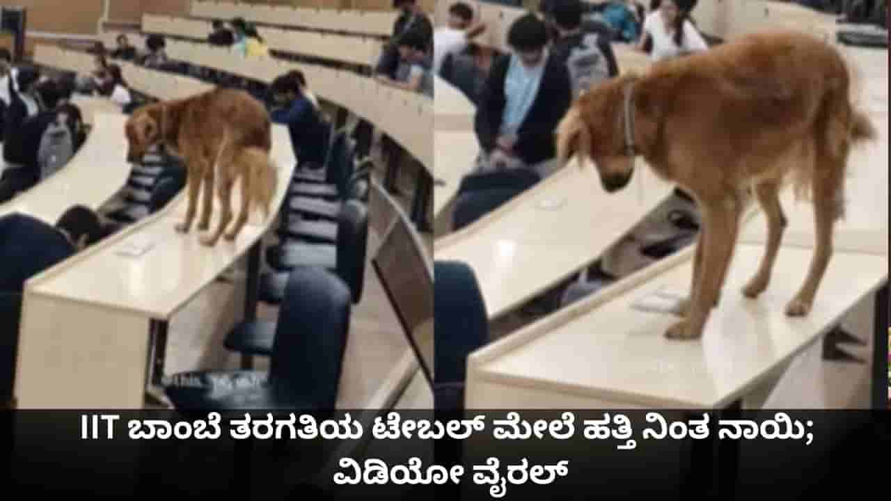 IIT ಬಾಂಬೆ ತರಗತಿಯ ಟೇಬಲ್ ಮೇಲೆ ಹತ್ತಿ ನಿಂತ ನಾಯಿ; ವಿಡಿಯೋ ವೈರಲ್