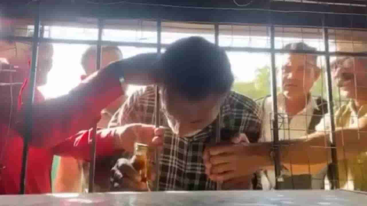 ಮದ್ಯ ಖರೀದಿಸುವಾಗ ಮದ್ಯದಂಗಡಿಯ ಕಬ್ಬಿಣದ ಗ್ರಿಲ್ನಲ್ಲಿ ಕುಡುಕನ ತಲೆ ಸಿಲುಕಿಕೊಂಡು ಆತ ಪರದಾಡಿದ ಘಟನೆ ನಡೆದಿದೆ. ಸತತ ಪ್ರಯತ್ನದ ನಂತರ ಆತನ ತಲೆಯನ್ನು ಹೊರಗೆ ಎಳೆಯಲಾಗಿದೆ. ಸಾಮಾಜಿಕ ಮಾಧ್ಯಮಗಳಲ್ಲಿ ಈ ತಮಾಷೆಯ ವೀಡಿಯೊ ವೈರಲ್ ಆಗುತ್ತಿದೆ. ಇದರಲ್ಲಿ ಹೆಸರಿಲ್ಲದ ಕುಡುಕ ವ್ಯಕ್ತಿಯೊಬ್ಬರ ಮದ್ಯದ ಬಾಟಲಿಯನ್ನು ತೆಗೆದುಕೊಳ್ಳಲು ಪ್ರಯತ್ನಿಸುತ್ತಾ ಮದ್ಯದಂಗಡಿಯ ಕಬ್ಬಿಣದ ಗ್ರಿಲ್ನಲ್ಲಿ ಸಿಲುಕಿಕೊಂಡಿರುವುದನ್ನು ತೋರಿಸಲಾಗಿದೆ.