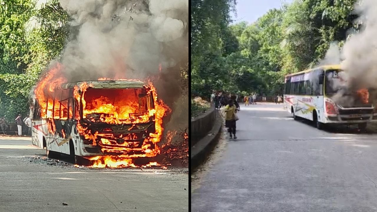 ಪ್ರಯಾಣಿಕರ ಮುಂದೆಯೇ ಧಗಧಗನೆ ಹೊತ್ತಿ ಉರಿದ ದುರ್ಗಾಂಬಾ ಬಸ್: ಓಡಿ ಬನ್ನಿ ಎಂದ ಕಂಡಕ್ಟರ್