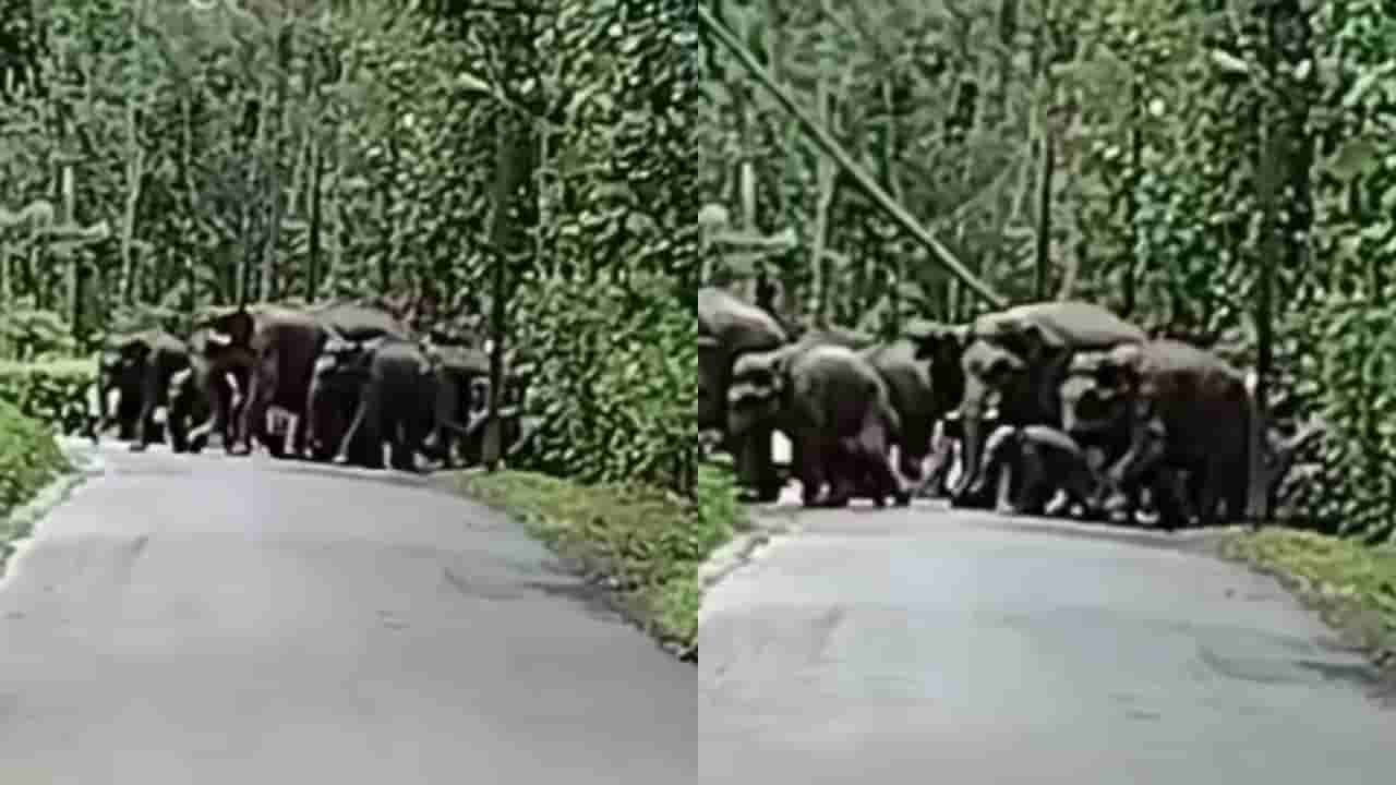 ವಿರಾಜಪೇಟೆ: ವಿದ್ಯುತ್ ಶಾಕ್ ತಗುಲಿ ಬಿದ್ದ ಮರಿಯನ್ನು ಸೊಂಡಿಲಿನಿಂದ ಎತ್ತಿ ರಕ್ಷಿಸಿದ ಕಾಡಾನೆ ಹಿಂಡು