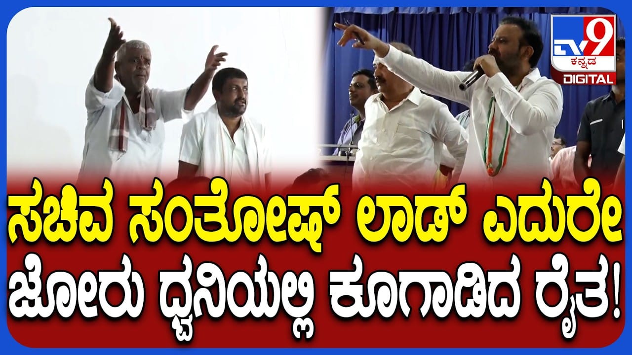 ಗೊಂದಲದ ಗೂಡಾದ ಕುಂದಗೋಳ ಜನಸಂಪರ್ಕ ಸಭೆ: ವೇದಿಕೆಯಲ್ಲೇ ಅಧಿಕಾರಿಗಳಿಗೆ ಸಚಿವ ಸಂತೋಷ್ ಲಾಡ್ ತರಾಟೆ