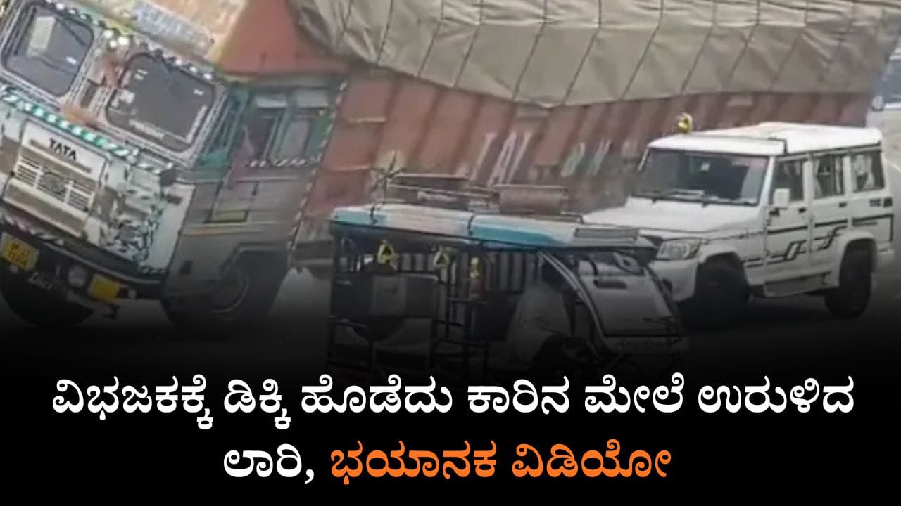 Video: ವಿಭಜಕಕ್ಕೆ ಡಿಕ್ಕಿ ಹೊಡೆದು ಕಾರಿನ ಮೇಲೆ ಉರುಳಿದ ಲಾರಿ, ಭಯಾನಕ ವಿಡಿಯೋ