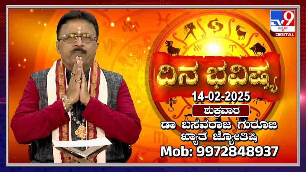 ದಿನಾಂಕ 14-02-2025 ರ ಶುಕ್ರವಾರದ ದ್ವಾದಶ ರಾಶಿ ಫಲಗಳನ್ನು ಖ್ಯಾತ ಜ್ಯೋತಿಷಿ ಬಸವರಾಜ ಗುರೂಜಿ ತಿಳಿಸಿದ್ದಾರೆ. ಪ್ರತಿ ರಾಶಿಯ ಫಲಗಳನ್ನು ವಿವರಿಸಲಾಗಿದೆ, ಆರ್ಥಿಕ ಸ್ಥಿತಿ, ಉದ್ಯೋಗ, ಆರೋಗ್ಯ, ಕುಟುಂಬ, ಮತ್ತು ಪ್ರಯಾಣಗಳ ಕುರಿತು ಮಾಹಿತಿ ನೀಡಲಾಗಿದೆ. ಪ್ರತಿ ರಾಶಿಗೂ ಶುಭ ಬಣ್ಣ, ದಿಕ್ಕು ಮತ್ತು ಅದೃಷ್ಟ ಸಂಖ್ಯೆಯನ್ನು ಸೂಚಿಸಲಾಗಿದೆ. ಮಂತ್ರ ಪಠಣದ ಸಲಹೆಯನ್ನೂ ನೀಡಲಾಗಿದೆ. ಮೇಷ, ವೃಷಭ, ಮಿಥುನ, ಕರ್ಕಾಟಕ, ಸಿಂಹ, ಕನ್ಯಾ, ತುಲಾ, ವೃಶ್ಚಿಕ, ಧನಸ್ಸು, ಮಕರ, ಕುಂಭ ಮತ್ತು ಮೀನ ರಾಶಿಗಳ ಫಲಗಳನ್ನು ವಿವರವಾಗಿ ವಿಶ್ಲೇಷಿಸಲಾಗಿದೆ.