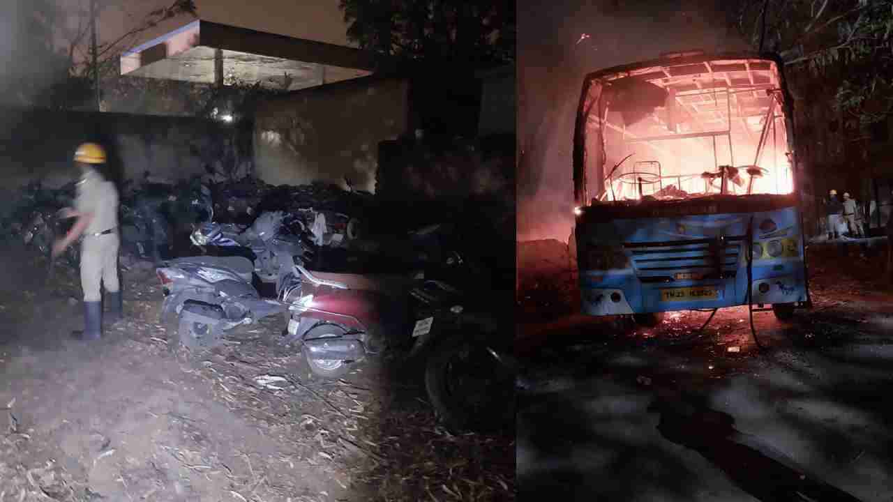 ಬೆಳ್ಳಂಬೆಳಗ್ಗೆ ಚಿಕ್ಕಬಳ್ಳಾಪುರದಲ್ಲಿ ಅಗ್ನಿ ಅವಘಡ: ಸುಟ್ಟುಭಸ್ಮವಾದ ಬಸ್, 10ಕ್ಕೂ ಹೆಚ್ಚು ಬೈಕ್ಗಳು