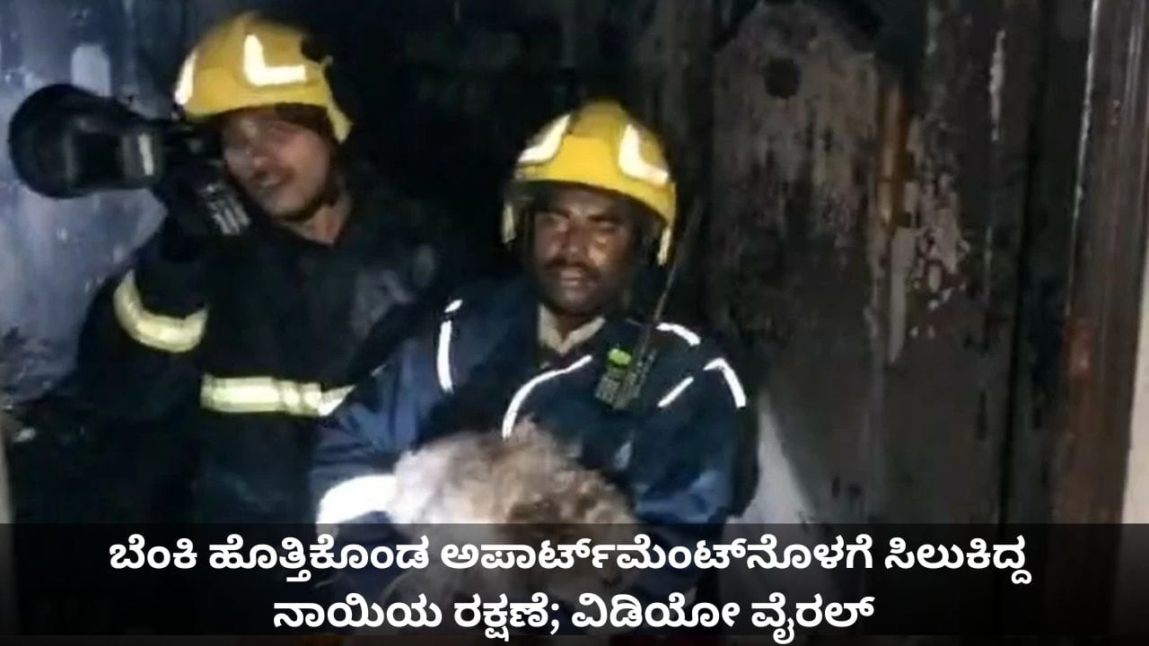 ಬೆಂಕಿ ಹೊತ್ತಿಕೊಂಡ ಅಪಾರ್ಟ್ಮೆಂಟ್ನೊಳಗೆ ಸಿಲುಕಿದ್ದ ಸಾಕು ನಾಯಿಯ ರಕ್ಷಣೆ; ವಿಡಿಯೋ ವೈರಲ್