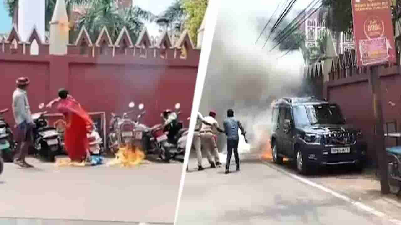 Video: ಹೈಕೋರ್ಟ್ ಎದುರು ನಿಲ್ಲಿಸಿದ್ದ ವಾಹನಗಳಿಗೆ ಬೆಂಕಿ ಹಚ್ಚಿದ ಮಹಿಳೆ