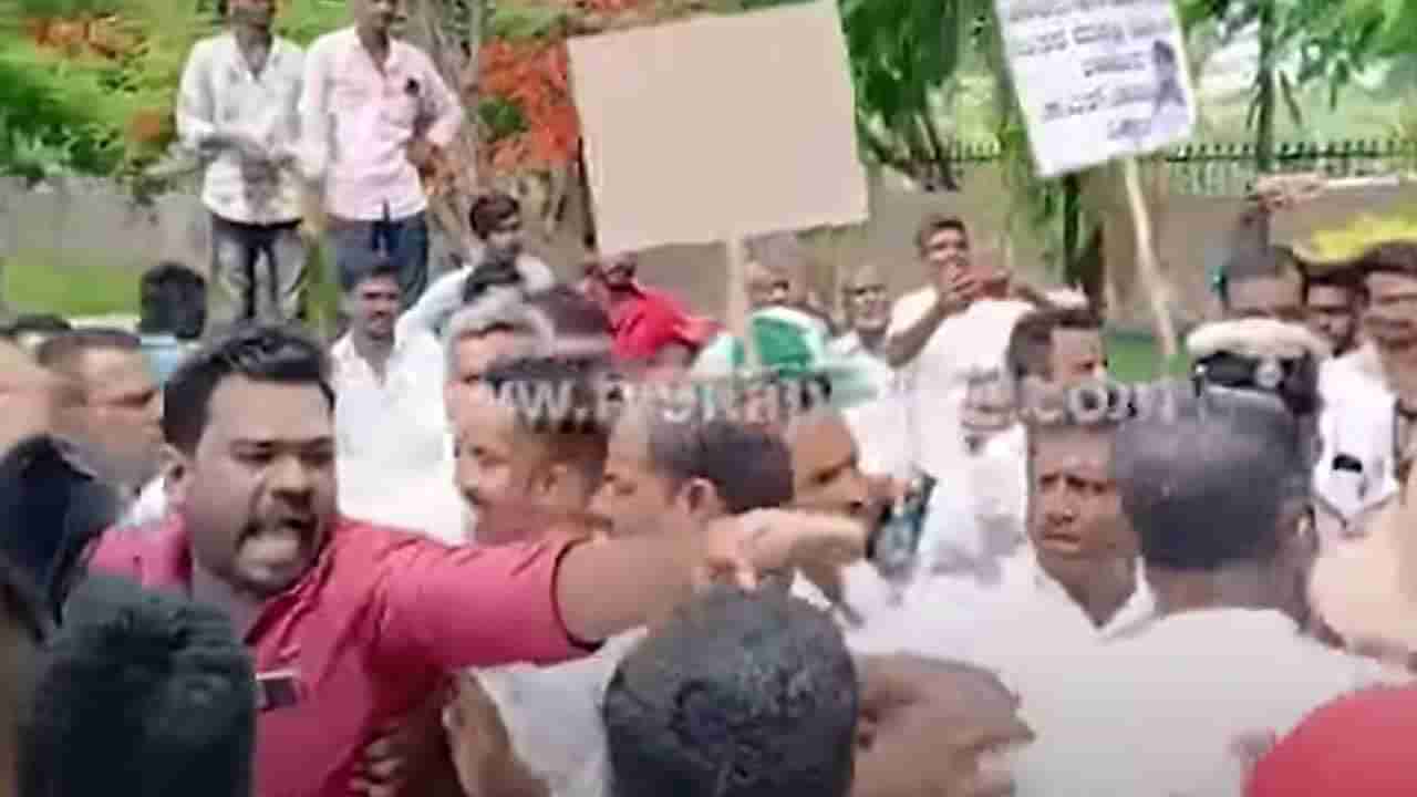 ತುಮಕೂರು: ಒಂದು ಹಾಡಿದೆ, ಹಳೆ ಕನ್ನಡ ಸಿನಿಮಾದ್ದು, ‘ಆಚಾರವಿಲ್ಲದ ನಾಲಿಗೆ ನಿನ್ನ ನೀಚ ಬುದ್ಧಿಯ ಬಿಡೋ ನಾಲಿಗೆ…’ ಅಂತ. ಕಾಂಗ್ರೆಸ್ ಮಾಜಿ ಶಾಸಕ ಕೆ ಎನ್ ರಾಜಣ್ಣ (KN Rajanna) ಅವರು ಜೆಡಿಎಸ್ ಪಕ್ಷದ ಪಿತಾಮಹ ಹೆಚ್ ಡಿ ದೇವೇಗೌಡರ (HD Devegowda) ವಿಚಾರದಲ್ಲಿ ಆಡಿದ ಅಪದ್ಧ, ಅಪ್ರಬುದ್ಧ ಮಾತುಗಳನ್ನು ಕೇಳಿಸಿಕೊಂಡವರಿಗೆ ಈ ಹಾಡು ನೆನಪು ಬಂದಿದ್ದರೆ ಆಶ್ಚರ್ಯವಿಲ್ಲ. ಆ ಕಾರಣಕ್ಕಾಗೇ ಮಧುಗಿರಿಯ ಐಬಿ ಬಳಿ ಜೆಡಿ(ಎಸ್) ಕಾರ್ಯಕರ್ತರು ರಾಜಣ್ಣನ ಪ್ರತಿಕೃತಿಗೆ (effigy) ಚಪ್ಪಲಿ ಹಾರ ಹಾಕಿ ಪ್ರತಿಭಟನೆ ನಡೆಸುತ್ತಿದ್ದಾರೆ.