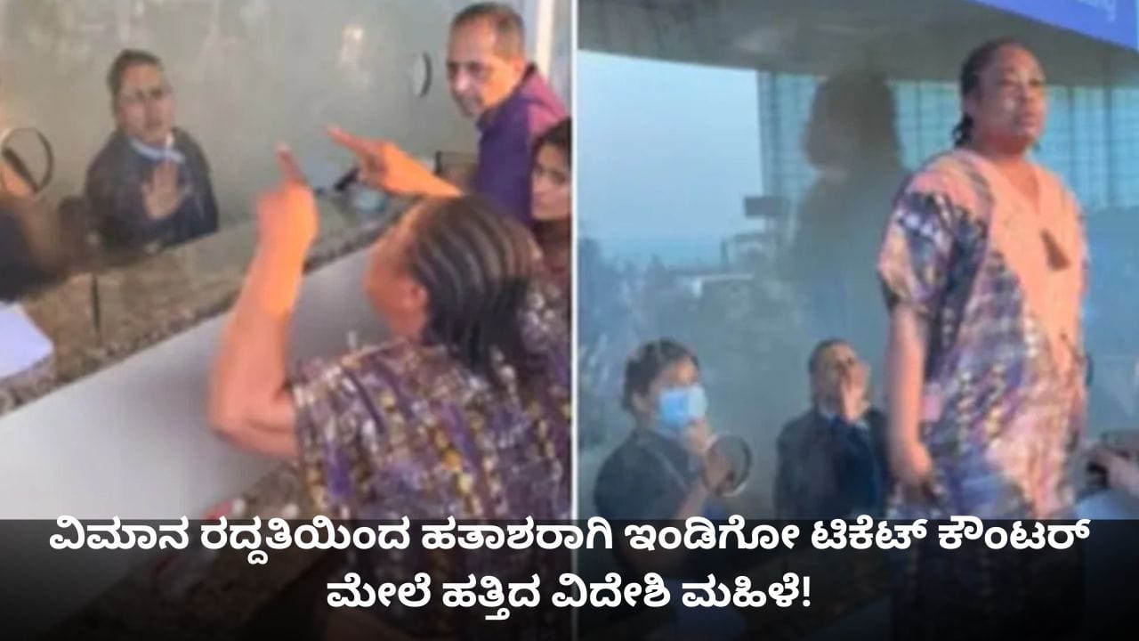 ವಿಮಾನ ರದ್ದತಿಯಿಂದ ಹತಾಶರಾಗಿ ಇಂಡಿಗೋ ಟಿಕೆಟ್ ಕೌಂಟರ್ ಮೇಲೆ ಹತ್ತಿದ ವಿದೇಶಿ ಮಹಿಳೆ!