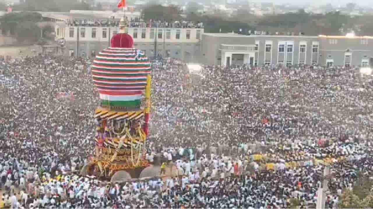 ಕೊಪ್ಪಳ, (ಜನವರಿ 05): ಭಕ್ತ ಸಾಗರದ ನಡುವೆ ಭವ್ಯ ರಥೋತ್ಸವ, ಕಣ್ಣು ಹಾಯಿಸಿದ ಕಡೆಯಲ್ಲೆಲ್ಲ ತಲೆ ಎತ್ತಿ ನಿಂತಿರುವ ಭಕ್ತರ ಸಮೂಹ. ಇರುವೆ ಸಾಲಿನಂತೆ ಸಾಗುತ್ತಿರುವ ಜನರ ದಂಡು.ಇದು ಕೊಪ್ಪಳದ ಗವಿಸಿದ್ದೇಶ್ವರ ಮಠದ ಆವರಣದಲ್ಲಿ ಕಂಡುಬಂದ ದೃಶ್ಯ. ಹೌದು..ದಕ್ಷಿಣ ಭಾರತದ ಕುಂಭಮೇಳ ಎಂದೇ ಖ್ಯಾತಿ ಪಡೆದಿರುವ ಕೊಪ್ಪಳದ ಶ್ರೀ ಗವಿಸಿದ್ದೇಶ್ವರ ಮಹಾಶಿವಯೋಗಿಗಳ ಜಾತ್ರಾ ಮಹೋತ್ಸವ (Koppal Gavisiddheshwar Rathotsav) ಇಂದು ಅದ್ದೂರಿಯಾಗಿ ನೆರವೇರಿತು. ನಮ್ಮ ಹೆಮ್ಮೆಯ ಕೊಪ್ಪಳ ಮೂಲದವರೇ ಆದ, ಸದ್ಯ ಮೇಘಾಲಯ ರಾಜ್ಯಪಾಲರಾಗಿರುವ ಗೌರವಾನ್ವಿತ ಹೆಚ್.ಸಿ. ವಿಜಯಶಂಕರ್ ಅವರು ರಥೋತ್ಸವಕ್ಕೆ ಚಾಲನೆ ನೀಡಿದ್ದು, ಲಕ್ಷಾಂತರ ಭಕ್ತರ ಹರ್ಷೋದ್ಗಾರ, ಮೈಸೂರುಪಾಕ್-ಪ್ರಸಾದದ ಘಮಲು ಹಾಗೂ ಅಜ್ಜನ ದರ್ಶನಕ್ಕಾಗಿ ಜನಸಾಗರವೇ ಹರಿದುಬಂದಿದೆ. ಇನ್ನು ಕೊಪ್ಪಳ ಅಜ್ಜನ ಜಾತ್ರೆ ಡ್ರೋಣ್ ದೃಶ್ಯ ನೋಡಿದರೆ ಎಲ್ಲಿ ನೋಡಿದರೂ ಜನ. ನೀವೂ ಒಂದು ಸಲ ನೋಡಿ.