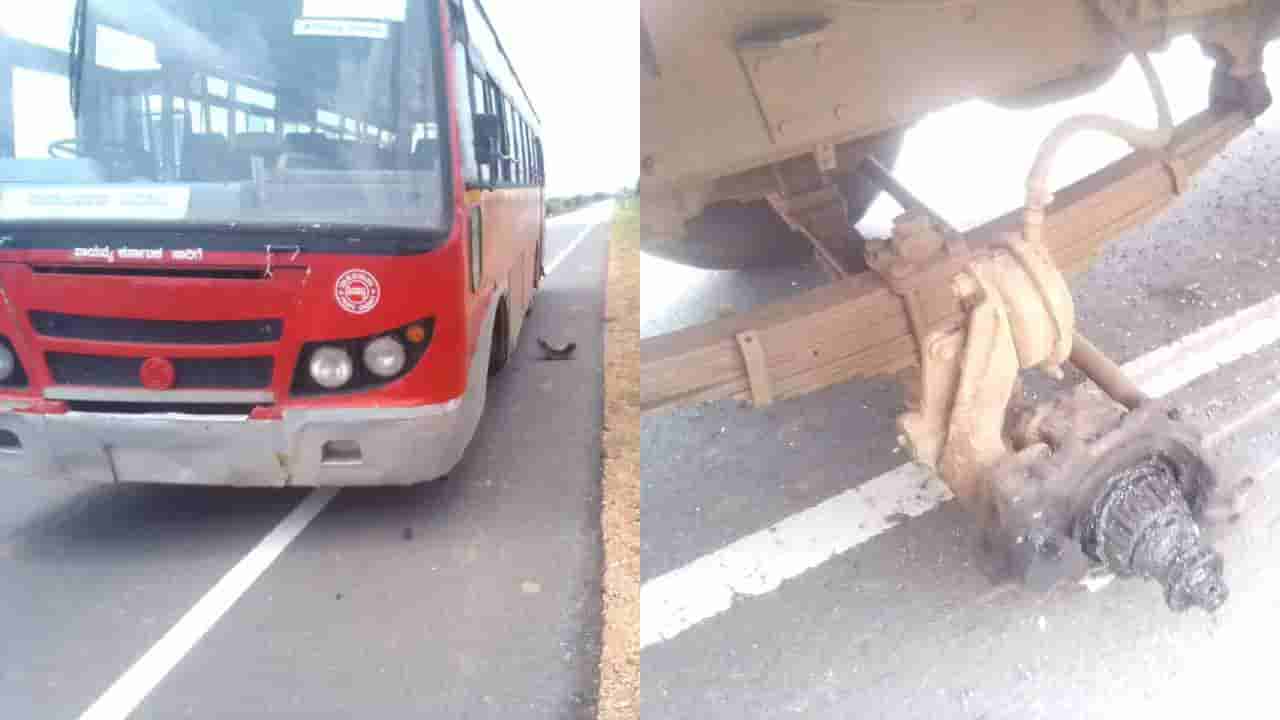 ಚಲಿಸುತ್ತಿರುವಾಗಲೇ ಕಳಚಿದ ಸರ್ಕಾರಿ ಬಸ್ ಚಕ್ರ: ಮುಂದೇನಾಯ್ತು?