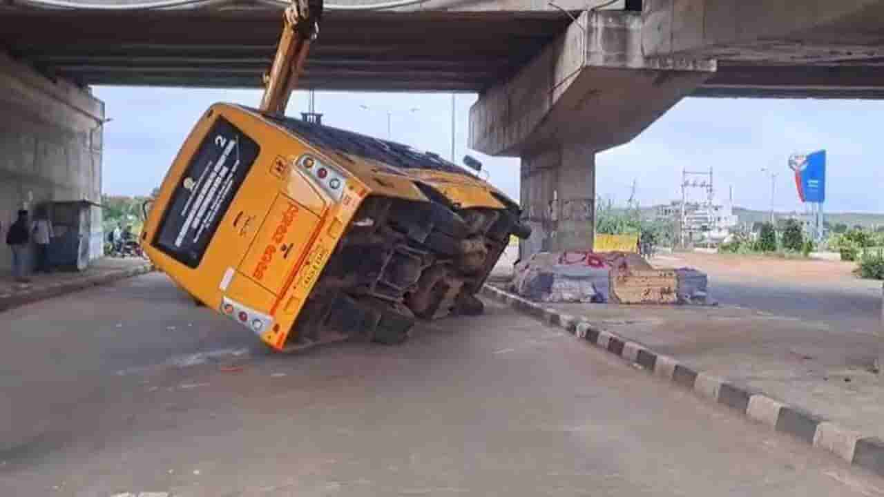 ಗದಗ, ಮೇ 29: ಶಾಲೆ ಆರಂಭದ ದಿನವೇ ಶಾಲಾ ವಾಹನ (School Bus) ಪಲ್ಟಿಯಾಗಿರುವಂತಹ ಘಟನೆ ನಗರದ R.K.ನಗರ ಬಳಿಯ ಅಂಡರ್ಪಾಸ್ನಲ್ಲಿ ನಡೆದಿದೆ. ವಿದ್ಯಾರ್ಥಿಗಳನ್ನು ಕರೆತರಲು ಹೊರಟಿದ್ದಾಗ ಘಟನೆ ಸಂಭವಿಸಿದ್ದು, ಹೀಗಾಗಿ ಭಾರೀ ಅನಾಹುತ ತಪ್ಪಿದೆ. ಶ್ರೀಪಾರ್ಶ್ವನಾಥ ಆಂಗ್ಲ ಮಾಧ್ಯಮ ಪ್ರೌಢಶಾಲೆಯ ಸ್ಕೂಲ್ ಬಸ್ಗೆ ಮಿನಿ ಕ್ಯಾಂಟರ್ ಡಿಕ್ಕಿಯಾಗಿ ಪಲ್ಟಿ ಹೊಡೆದಿದೆ. ಶಾಲಾ ಬಸ್ ಚಾಲಕನಿಗೆ ಸಣ್ಣಪುಟ್ಟ ಗಾಯಗಳಾಗಿದ್ದು, ಆಸ್ಪತ್ರೆಗೆ ದಾಖಲಿಸಲಾಗಿದೆ. ಗದಗ ಸಂಚಾರಿ ಪೊಲೀಸ್ ಠಾಣಾ ವ್ಯಾಪ್ತಿಯಲ್ಲಿ ಘಟನೆ ನಡೆದಿದೆ.