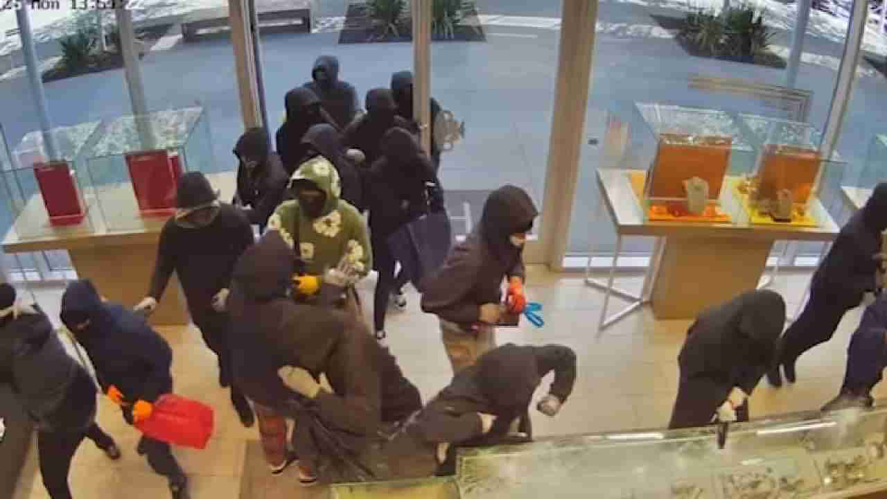 ಅಮೆರಿಕದ ಕ್ಯಾಲಿಫೋರ್ನಿಯಾದಲ್ಲಿರುವ ಆಭರಣದ ಅಂಗಡಿಗೆ 25 ಮಂದಿ ಕಳ್ಳರು ಶಸ್ತ್ರಾಸ್ತ್ರಗಳ ಸಮೇತ ನುಗ್ಗಿರುವ ವಿಡಿಯೋ ಎಲ್ಲೆಡೆ ವೈರಲ್ ಆಗಿದೆ. ಅಂಗಡಿಯಲ್ಲಿ ಸುಮಾರು 9 ಕೋಟಿ ರೂ. ಮೌಲ್ಯದ ಚಿನ್ನಾಭರಣವನ್ನು ಲೂಟಿ ಮಾಡಿದ್ದಾರೆ. ಇಲ್ಲಿಯವರೆಗೆ 7 ಶಂಕಿತರನ್ನು ಬಂಧಿಸಲಾಗಿದೆ. ಕೆಲವು ಆಭರಣಗಳನ್ನು ವಶಪಡಿಸಿಕೊಳ್ಳಲಾಗಿದೆ. ಮುಸುಕುಧಾರಿಗಳ ಬಳಿ ಬಂದೂಕು ಕೂಡಾ ಇತ್ತು. ಎರಡು ವರ್ಷಗಳಲ್ಲಿ ಹೆಲ್ಲರ್ ಜ್ಯುವೆಲ್ಲರ್ಸ್ ಅನ್ನು ಗುರಿಯಾಗಿಸಿಕೊಂಡು ಭಾರಿ ದರೋಡೆ ನಡೆಸುತ್ತಿರುವುದು ಇದು ಎರಡನೇ ಬಾರಿಯಾಗಿದೆ. 2023 ರಲ್ಲಿ ಸೇಂಟ್ ಪ್ಯಾಟ್ರಿಕ್ ದಿನದಂದು ಏಳು ಮುಸುಕುಧಾರಿಗಳ ಗುಂಪು ಇದೇ ರೀತಿ ಅಂಗಡಿಗೆ ನುಗ್ಗಿ ಕೋಟಿಗಟ್ಟಲೆ ಬೆಲೆ ಬಾಳುವ ಆಭರಣಗಳನ್ನು ದೋಚಿದ್ದರು.