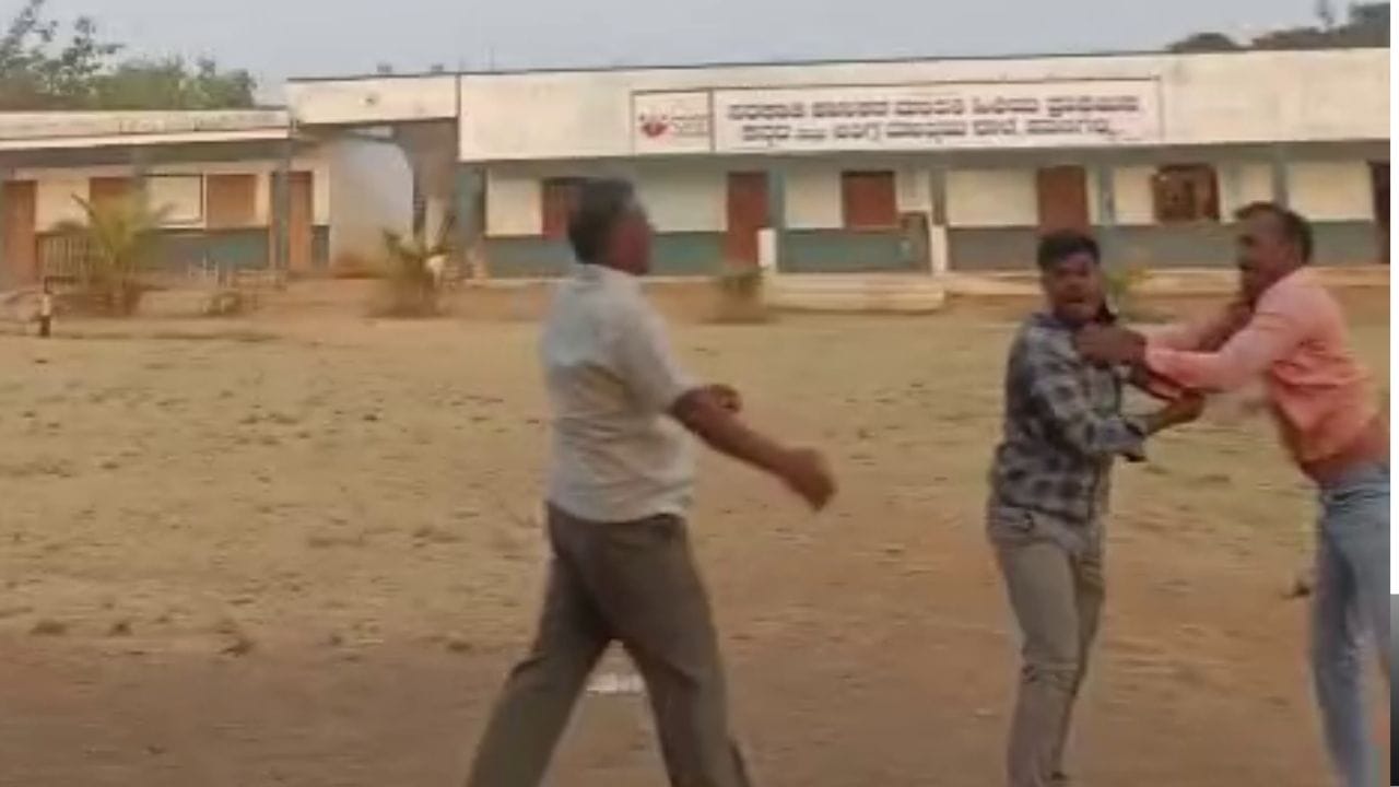 ಹಾವೇರಿ: ಶಾಲೆ ಆವರಣದಲ್ಲೇ ಪುಂಡರಂತೆ ಹೊಡೆದಾಡಿಕೊಂಡ ಅತಿಥಿ ಶಿಕ್ಷಕ, ಎಸ್ಡಿಎಂಸಿ ಅಧ್ಯಕ್ಷ, ವಿಡಿಯೋ ವೈರಲ್