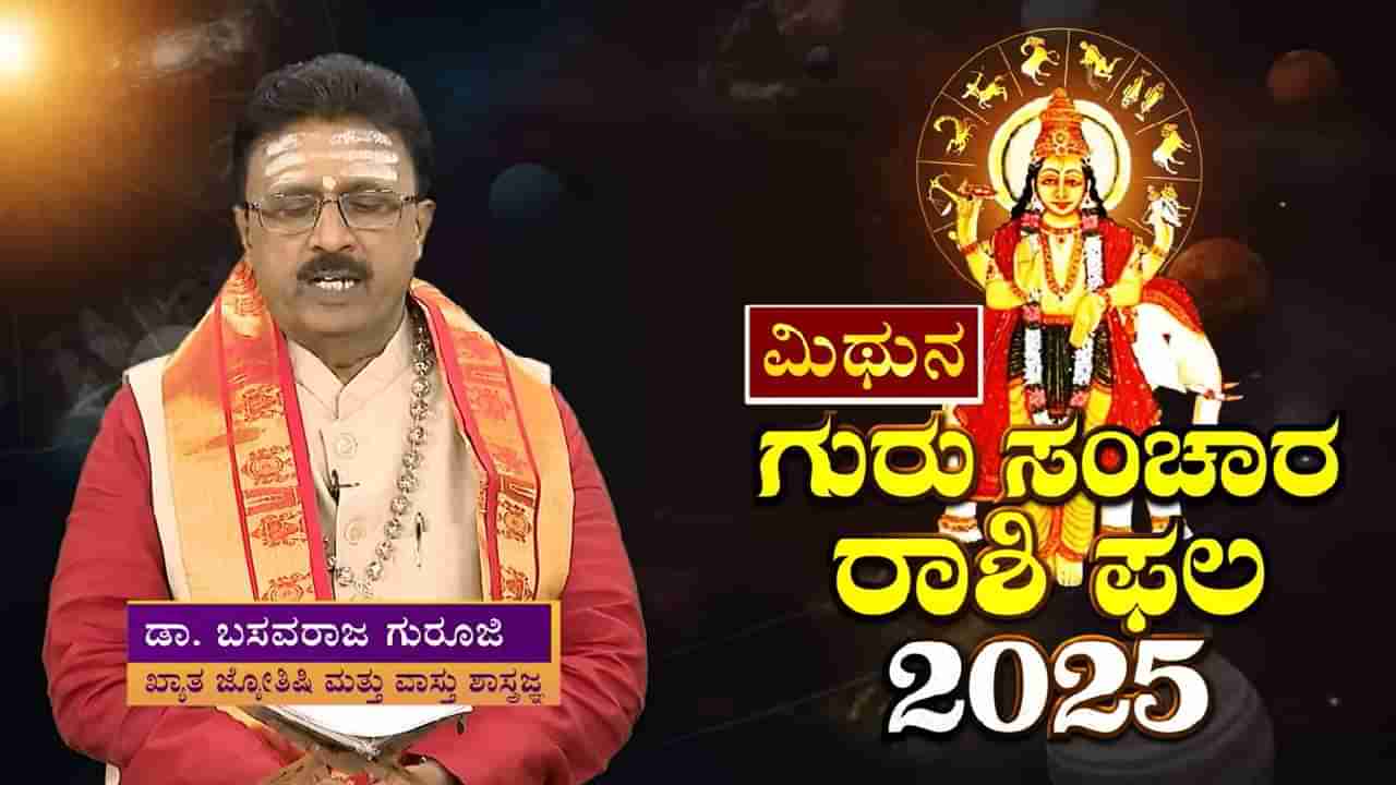 ಗುರು ಗ್ರಹ ವೃಷಭ ರಾಶಿಯಿಂದ ಮಿಥುನ ರಾಶಿಗೆ ಮೇ 15 ರಂದು ಪ್ರವೇಶಿಸಿದೆ. ಈ ಸಂಚಾರದ ಬಗ್ಗೆ ಖ್ಯಾತ ಜ್ಯೋತಿಷಿಗಳಾದ ಡಾ. ಬಸವರಾಜ ಗುರೂಜಿಯವರು ನೀಡಿರುವ ಮಾಹಿತಿ ಇಲ್ಲಿದೆ. ಇಲ್ಲಿ ಮಿಥುನ ರಾಶಿಯವರಿಗೆ ಉದ್ಯೋಗ, ಆರ್ಥಿಕ ಮತ್ತು ವೈಯಕ್ತಿಕ ಜೀವನದಲ್ಲಿ ಆಗುವ ಬದಲಾವಣೆಗಳ ಬಗ್ಗೆ ಮಾಹಿತಿ ನೀಡಲಾಗಿದೆ.