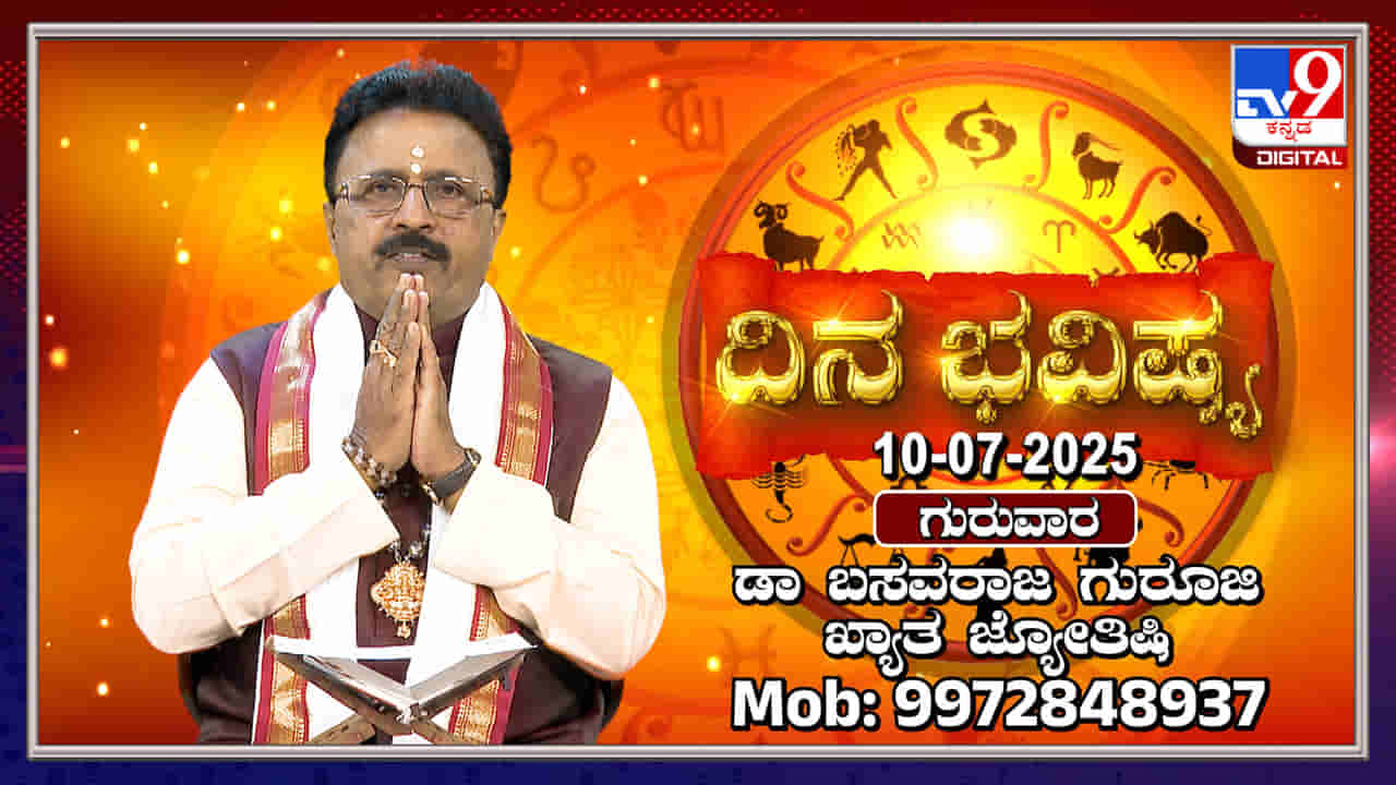 ಜುಲೈ 10ರ ದಿನದ ರಾಶಿ ಭವಿಷ್ಯವನ್ನು ಡಾ. ಬಸವರಾಜ ಗುರೂಜಿಯವರು ವಿಡಿಯೋದಲ್ಲಿ ವಿವರಿಸಿದ್ದಾರೆ. ಪ್ರತಿ ರಾಶಿಯವರಿಗೂ ಆರ್ಥಿಕ, ವೃತ್ತಿಪರ ಮತ್ತು ವೈಯಕ್ತಿಕ ಜೀವನದ ಬಗ್ಗೆ ಮುನ್ಸೂಚನೆಗಳನ್ನು ನೀಡಲಾಗಿದೆ. ಜೊತೆಗೆ ಇಂದು ಗುರುಪೂರ್ಣಿಮೆ ಕೂಡ ಇದೆ. ಹಾಗಾಗಿ ಯಾವೆಲ್ಲಾ ರಾಶಿಗಳಿಗೆ ಶುಭ ಕಾದಿದೆ ತಿಳಿಯಿರಿ.