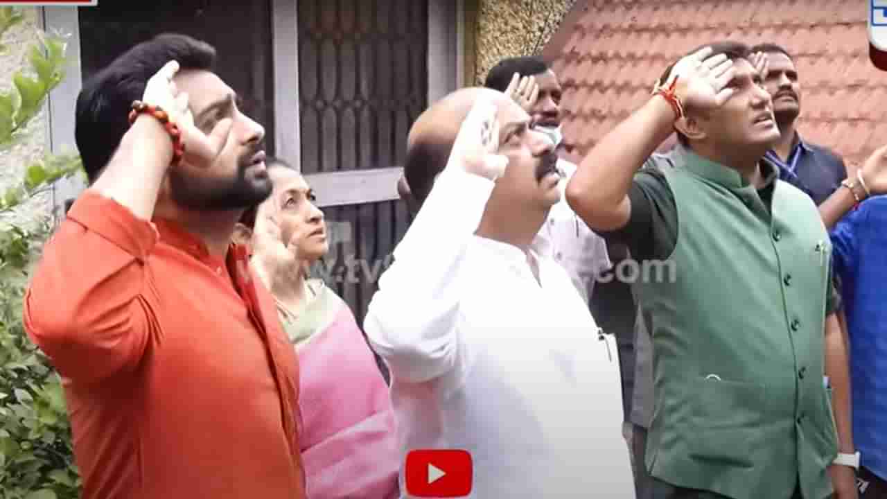 ಬೆಂಗಳೂರು: ಹರ್ ಘರ್ ತಿರಂಗಾ (Har Ghar Tiranga) ಅಭಿಯಾನ ಜೋರು ಹಿಡಿದಿದೆ ಮತ್ತು ರಾಜ್ಯದಲ್ಲಿ ಅನೇಕ ಜನ ತಮ್ಮ ತಮ್ಮ ಮನೆಗಳ ಮುಂದೆ ರಾಷ್ಟ್ರಧ್ವಜವನ್ನು (National Flag) ಹಾರಿಸಿದ್ದಾರೆ ಮತ್ತು ಹಾರಿಸುತ್ತಿದ್ದಾರೆ. ಶನಿವಾರ ಬೆಳಗ್ಗೆ ಮುಖ್ಯಮಂತ್ರಿ ಬಸವರಾಜ ಬೊಮ್ಮಾಯಿ (Basavaraj Bommai) ಅವರು ಬೆಂಗಳೂರಿನ ಆರ್ ಟಿ ನಗರದಲ್ಲಿರುವ ತಮ್ಮ ನಿವಾಸದ ಮುಂದೆ ತಿರಂಗವನ್ನು ಹಾರಿಸಿದರು. ಈ ಸಂದರ್ಭದಲ್ಲಿ ಬೊಮ್ಮಾಯಿ ಅವರೊಂದಿಗೆ ಕುಟುಂಬದ ಸದಸ್ಯರು ಮತ್ತು ಆರೋಗ್ಯ ಸಚಿವ ಡಾ ಕೆ ಸುಧಾಕರ್ ಇದ್ದರು.