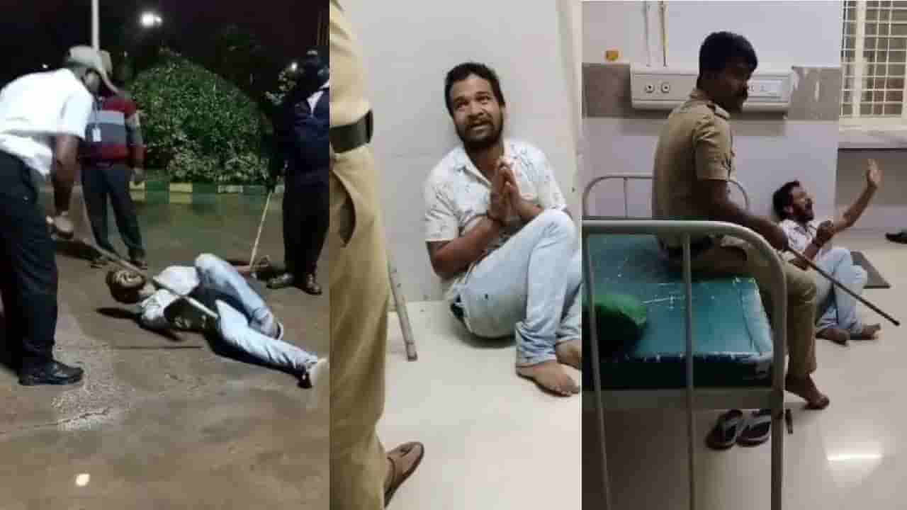 ಹಾಸನ ಜಿಲ್ಲಾಸ್ಪತ್ರೆ ಸೆಕ್ಯುರಿಟಿಗಾರ್ಡ್ ಕ್ರೌರ್ಯ: ಪೊಲೀಸ್ ಮುಂದೆಯೇ ಯುವಕನಿಗೆ ಮನಸೋ ಇಚ್ಚೇ ಥಳಿತ
