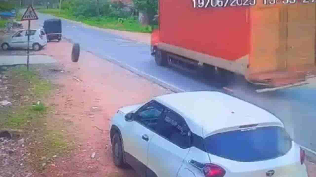 ಹಾಸನ, ಜೂನ್ 20: ವೇಗವಾಗಿ ಚಲಿಸುತ್ತಿದ್ದ ಲಾರಿಯ ಚಕ್ರಗಳು ಏಕಾಏಕಿ ಕಳಚಿ ರಸ್ತೆ ಬದಿ ನಿಂತಿದ್ದ ಆಟೋಗೆ ಡಿಕ್ಕಿ (collision) ಅಪ್ಪಳಿಸಿರುವಂತಹ ಘಟನೆ ಜಿಲ್ಲೆಯ ಬೇಲೂರು ತಾಲ್ಲೂಕಿನ ಮತ್ತಿಹಳ್ಳಿ ಗ್ರಾಮದ ಬಳಿ ನಡೆದಿದೆ. ಟಯರ್ ಡಿಕ್ಕಿ ರಭಸಕ್ಕೆ ಅಟೋ ಸಂಪೂರ್ಣ ಜಖಂ ಆಗಿದ್ದು, ಅದೃಷ್ಟವಶಾತ್ ಭಾರೀ ಅನಾಹುತ ತಪ್ಪಿದೆ. ಚಕ್ರಗಳು ಕಳಚಿಕೊಂಡು ಆಟೋಗೆ ಅಪ್ಪಳಿಸುವ ದೃಶ್ಯ ಸಿಸಿಟಿವಿಯಲ್ಲಿ ಸೆರೆ ಆಗಿದೆ.
