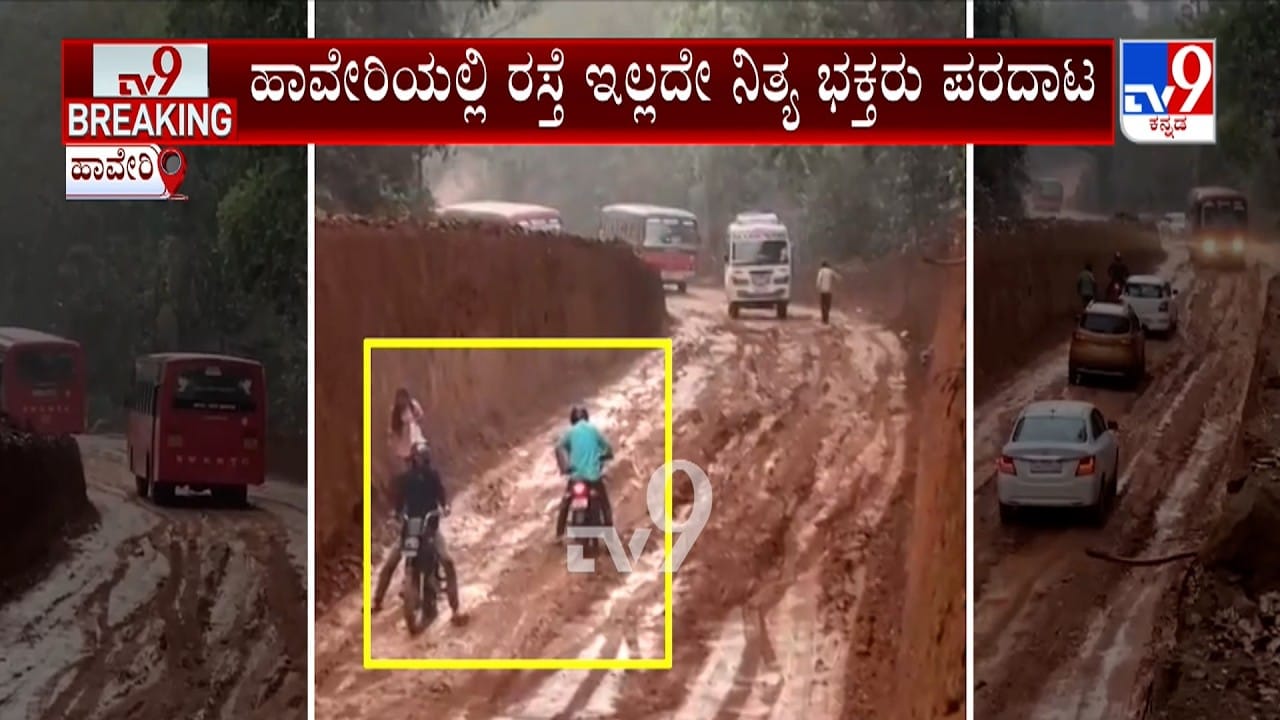 ಹಾವೇರಿ, ಫೆಬ್ರವರಿ 27: ಜಿಲ್ಲೆಯಿಂದ ಶಿರಸಿಗೆ ಸಂಪರ್ಕ ಕಲ್ಪಿಸುವ ರಾಜ್ಯ ಹೆದ್ದಾರಿ ಸಂಪೂರ್ಣ ಹದಗೆಟ್ಟ ಪರಿಣಾಮ ದಕ್ಷಿಣ ಭಾರತದಲ್ಲಿಯೇ ಪ್ರಸಿದ್ಧಿ ಪಡೆದ ಶಿರಸಿಯ ಮಾರಿಕಾಂಬಾ ಜಾತ್ರೆಗೆ ತೆರಳುವ ಭಕ್ತರು ಪ್ರತಿನಿತ್ಯ ಪರದಾಟ ನಡೆಸಬೇಕಾದ ಸ್ಥಿತಿ ಉದ್ಭವವಾಗಿದೆ. ಕಳೆದ ಮೂರು ವರ್ಷಗಳಿಂದ ಹೆದ್ದಾರಿಯ ಕಾಮಗಾರಿ ನಡೆಯುತ್ತಿದ್ದು, ಹಾವೇರಿ ಜಿಲ್ಲೆಯ ಗಡಿ ದಾಟುತ್ತಿದ್ದಂತೆ 20 ಕಿಲೋ ಮೀಟರ್ ರಸ್ತೆಯಲ್ಲಿ ಜೀವದ ಹಂಗು ತೊರೆದು ವಾಹನ ಸವಾರರು ಸಂಚರಿಸಬೇಕಿದೆ. ಅಕಾಲಿಕವಾಗಿ ಸುರಿದ ಅ್ಪ ಮಳೆಗೇ ರಸ್ತೆ ಕೆಸರು ಗದ್ದೆಯಂತಾಗಿದ್ದು, ಬೈಕ್ ಸವಾರರು ಬಿದ್ದು ಒದ್ದಾಡಿರು ಪ್ರಸಂಗಗಳೂ ನಡೆದಿವೆ. ಈ ರಸ್ತೆಯಲ್ಲಿ ಸುಗಮವಾಗಿ ಸಂಚರಿಸಲು ಸಾಧ್ಯವಾಗದೆ, ಕೆಸರಲ್ಲಿ ಸಿಲುಕಿ ವಾಯನಗಳು ನಿಯಂತ್ರಣ ಕಳೆದುಕೊಂಡಿರುವ ವಿಡಿಯೋಗಳು ಸಾಮಾಜಿಕ ಜಾಲತಾಣಗಳಲಲ್ಲಿ ವೈರಲ್ ಆಗುತ್ತಿವೆ.