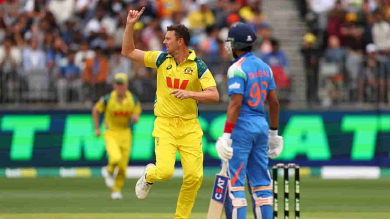 Hazlewood Dominates India ODI: ಜೋಶ್ ಹೇಜಲ್ವುಡ್ ಭಾರತದ ವಿರುದ್ಧದ ಮೊದಲ ಏಕದಿನ ಪಂದ್ಯದಲ್ಲಿ ಅದ್ಭುತ ಬೌಲಿಂಗ್ ಪ್ರದರ್ಶಿಸಿದರು. 7 ಓವರ್ಗಳಲ್ಲಿ ಕೇವಲ 20 ರನ್ ನೀಡಿ ರೋಹಿತ್ ಶರ್ಮಾ ಮತ್ತು ಶ್ರೇಯಸ್ ಅಯ್ಯರ್ ಅವರ ಪ್ರಮುಖ 2 ವಿಕೆಟ್ಗಳನ್ನು ಕಬಳಿಸಿದರು. ಅಯ್ಯರ್ ಅವರನ್ನು 13 ಇನ್ನಿಂಗ್ಸ್ಗಳಲ್ಲಿ 7ನೇ ಬಾರಿಗೆ ಔಟ್ ಮಾಡುವ ಮೂಲಕ ತಮ್ಮ ಪ್ರಾಬಲ್ಯ ಮೆರೆದರು. ಅವರ 35 ಡಾಟ್ ಬಾಲ್ಗಳು ಭಾರತೀಯ ಬ್ಯಾಟ್ಸ್ಮನ್ಗಳಿಗೆ ತೊಂದರೆ ನೀಡಿದವು.