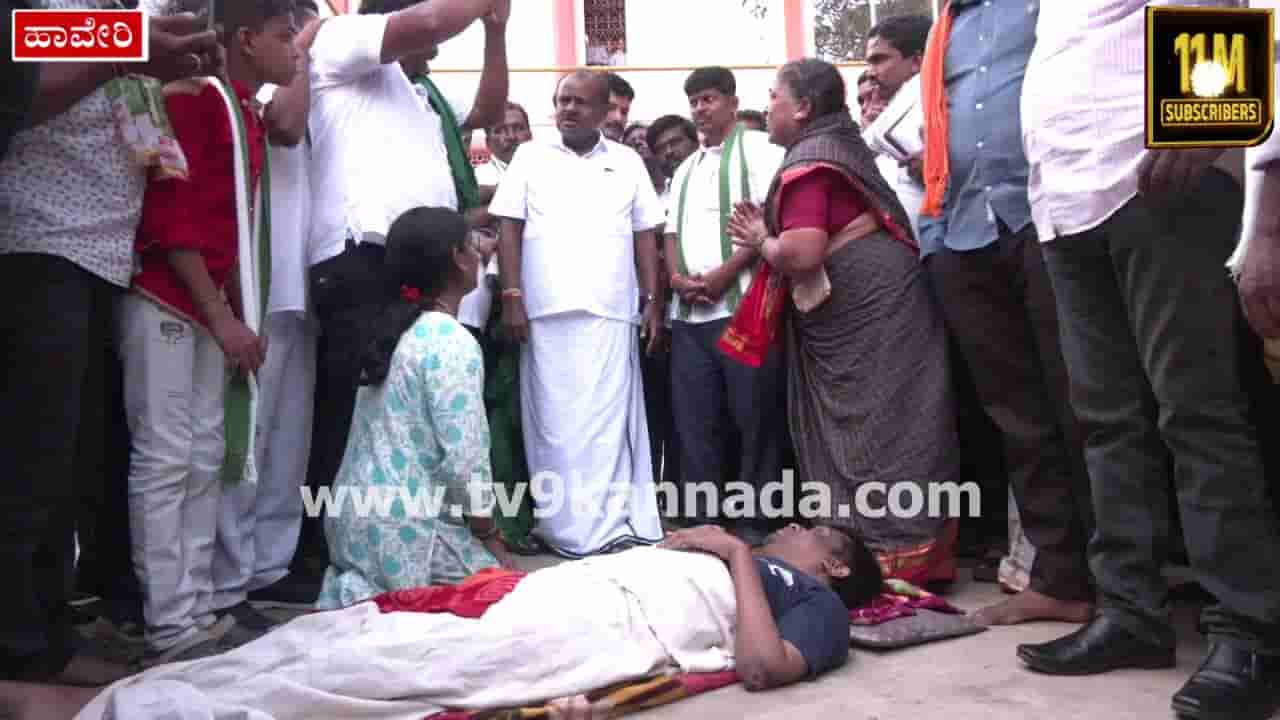ಕೇಂದ್ರ ಸಚಿವ ಎಚ್.ಡಿ. ಕುಮಾರಸ್ವಾಮಿ ರವಿವಾರ (ಫೆ.09) ಹಾವೇರಿ ಜಿಲ್ಲೆ ರಾಣೇಬೆನ್ನೂರಿಗೆ ಭೇಟಿ ನೀಡಿದ್ದಾರೆ. ಈ ವೇಳೆ ಅಪಘಾತದಲ್ಲಿ ತೀವ್ರವಾಗಿ ಗಾಯಗೊಂಡು ಹಾಸಿಗೆ ಹಿಡಿದ ಯುವಕನ ಕುಟುಂಬಸ್ಥರು ಹೆಚ್ಡಿ ಕುಮಾರಸ್ವಾಮಿಯವರನ್ನು ಭೇಟಿ ಮಾಡಿ, ಚಿಕಿತ್ಸೆಗೆ ಸಹಾಯ ಕೇಳಿದರು. ಹಾವೇರಿ ತಾಲ್ಲೂಕಿನ ಸಂಗೂರು ಗ್ರಾಮದ ನಿವಾಸಿ ಜಗದೀಶ ಸಜ್ಜನರ್ (30) ಅಪಘಾತದಲ್ಲಿ ಗಾಯಗೊಂಡು ಹಾಸಿಗೆ ಹಿಡಿದಿದ್ದಾರೆ. ಇವರ ಕುಟುಂಬಸ್ಥರು ಹೆಚ್ಡಿ ಕುಮಾರಸ್ವಾಮಿ ಅವರನ್ನು ಭೇಟಿ ಮಾಡಿ, ಕಣ್ಣೀರು ಹಾಕಿ, ಕಾಲಿಗೆ ನಮಸ್ಕರಿಸಿ ಚಿಕಿತ್ಸೆಗಾಗಿ ಸಹಾಯ ಮಾಡಿ ಎಂದು ಮನವಿ ಮಾಡಿಕೊಂಡರು.
