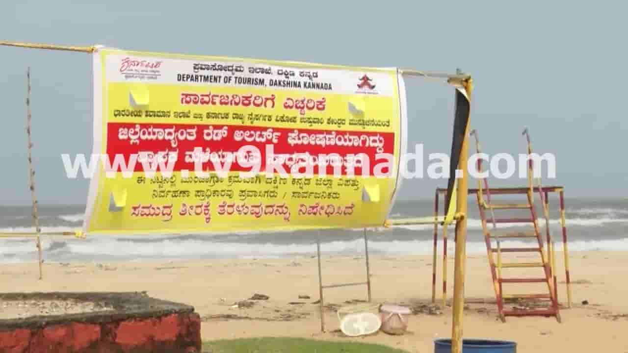 ಮಂಗಳೂರಿನ ಬೀಚ್ಗಳೆಲ್ಲ ಖಾಲಿ ಖಾಲಿಯಾಗಿವೆ. ಭಾರತೀಯ ಹವಾಮಾನ ಇಲಾಖೆ ದಕ್ಷಿಣ ಕನ್ನಡ ಜಿಲ್ಲೆಗೆ ರೆಡ್ ಅಲರ್ಟ್ ಘೋಷಿಸಿದ್ದು, ಮುಂದಿನ 48 ಗಂಟೆಗಳಲ್ಲಿ ಭಾರಿ ಮಳೆಯಾಗುವ ಮುನ್ಸೂಚನೆ ಇದೆ. ಅಷ್ಟೇ ಅಲ್ಲದೆ, ಸಮುದ್ರ ಪ್ರಕ್ಷುಬ್ಧಗೊಂಡಿದೆ. ಹೀಗಾಗಿ ಮಂಗಳೂರಿನ ಎಲ್ಲ ಬೀಚ್ಗಳಿಗೆ ಎಂಟ್ರಿ ನಿಷೇಧಿಸಲಾಗಿದೆ.
