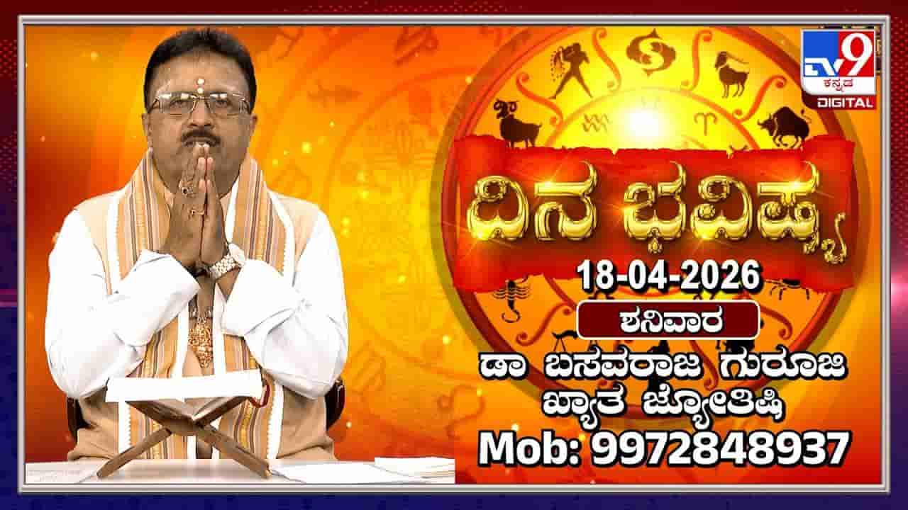 ಟಿವಿ9 ಡಿಜಿಟಲ್ ವಾಹಿನಿಯಲ್ಲಿ ಪ್ರಸಾರವಾದ ದಿನಭವಿಷ್ಯ ಕಾರ್ಯಕ್ರಮದಲ್ಲಿ ಖ್ಯಾತ ಜ್ಯೋತಿಷಿ ಡಾ. ಬಸವರಾಜ ಗುರೂಜಿ ಅವರು ಏಪ್ರಿಲ್ 18, ಶನಿವಾರದ ದ್ವಾದಶ ರಾಶಿಗಳ ಫಲಾಫಲಗಳನ್ನು ವಿವರಿಸಿದ್ದಾರೆ. ಇದು ಪರಾಭವನಾಮ ಸಂವತ್ಸರ, ಉತ್ತರಾಯಣ, ವೈಶಾಖ ಮಾಸ, ವಸಂತ ಋತು, ಶುಕ್ಲ ಪಕ್ಷ, ಪಾಡ್ಯ, ಅಶ್ವಿನಿ ನಕ್ಷತ್ರ, ಪ್ರೀತಿಯೋಗ ಮತ್ತು ಭವಕರಣಗಳನ್ನು ಒಳಗೊಂಡಿರುವ ವಿಶೇಷ ದಿನವಾಗಿದೆ. ಈ ದಿನದ ರಾಹುಕಾಲ ಬೆಳಗ್ಗೆ 9:11 ರಿಂದ 10:44 ರವರೆಗೆ ಇದ್ದು, ಸರ್ವಸಿದ್ಧಿ ಕಾಲ ಅಂದರೆ ಶುಭಕಾಲವು ಮಧ್ಯಾಹ್ನ 1:52 ರಿಂದ 3:02 ರವರೆಗೆ ಇರುತ್ತದೆ. ಈ ಪರ್ವದಿನವು ಸಾಕ್ಷಾತ್ ಶನಿ ಭಗವಾನ, ವೆಂಕಟೇಶ ಹಾಗೂ ಹನುಮಂತ ದೇವರ ಲಹರಿಗಳ ಪ್ರಭಾವದಿಂದ ಕೂಡಿದೆ. ಡಾ. ಬಸವರಾಜ ಗುರೂಜಿ ಅವರು ಪ್ರತಿ ರಾಶಿಗಳಿಗೂ ಗ್ರಹಗಳ ಶುಭ ಫಲ, ಧನ ಯೋಗ, ಆರೋಗ್ಯ, ವ್ಯವಹಾರ, ಅದೃಷ್ಟ ಸಂಖ್ಯೆ, ಬಣ್ಣ ಮತ್ತು ದಿಕ್ಕಿನ ಬಗ್ಗೆ ವಿವರಿಸಿದ್ದಾರೆ.