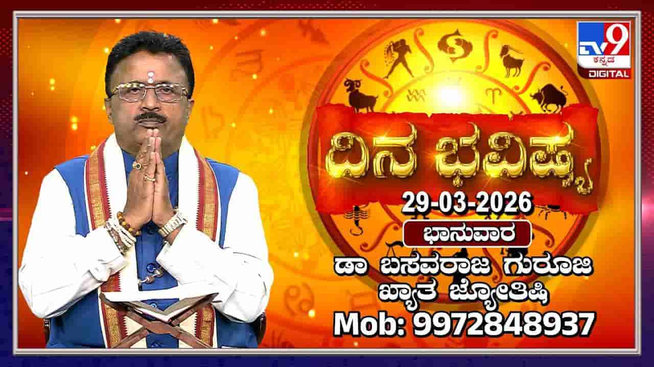 ಟಿವಿ9 ಡಿಜಿಟಲ್ ವಾಹಿನಿಯಲ್ಲಿ ಪ್ರಸಾರವಾದ ದಿನಭವಿಷ್ಯ ಕಾರ್ಯಕ್ರಮದಲ್ಲಿ ಖ್ಯಾತ ಜ್ಯೋತಿಷಿ ಡಾ. ಬಸವರಾಜ ಗುರೂಜಿ ಅವರು ಮಾರ್ಚ್ 29, ಭಾನುವಾರದ ದ್ವಾದಶ ರಾಶಿಗಳ ಫಲಾಫಲಗಳನ್ನು ವಿವರಿಸಿದ್ದಾರೆ. ಈ ದಿನ ಪರಾಭವ ನಾಮ ಸಂವತ್ಸರ, ಉತ್ತರಾಯಣ, ಚೈತ್ರ ಮಾಸ, ವಸಂತ ಋತು, ಶುಕ್ಲ ಪಕ್ಷ, ಏಕಾದಶಿ ತಿಥಿಯಾಗಿದೆ. ಇಂದು ಡಾ. ಬಸವರಾಜ ಗುರೂಜಿಯವರು ಪ್ರತಿ ರಾಶಿಯವರಿಗೂ ಆರೋಗ್ಯ, ಆರ್ಥಿಕ ಸ್ಥಿತಿ, ಉದ್ಯೋಗ, ವ್ಯಾಪಾರ, ಕುಟುಂಬ ಮತ್ತು ವೈಯಕ್ತಿಕ ಸಂಬಂಧಗಳ ಕುರಿತು ವಿವರವಾದ ಸಲಹೆಗಳನ್ನು ನೀಡಿದ್ದಾರೆ. ಆಶ್ಲೇಷ ನಕ್ಷತ್ರದಲ್ಲಿ ಚಂದ್ರನ ಸಂಚಾರವು ವಿವಿಧ ರಾಶಿಗಳ ಮೇಲೆ ಹೇಗೆ ಪರಿಣಾಮ ಬೀರುತ್ತದೆ ಎಂಬುದನ್ನು ಅವರು ವಿವರಿಸಿದ್ದಾರೆ.