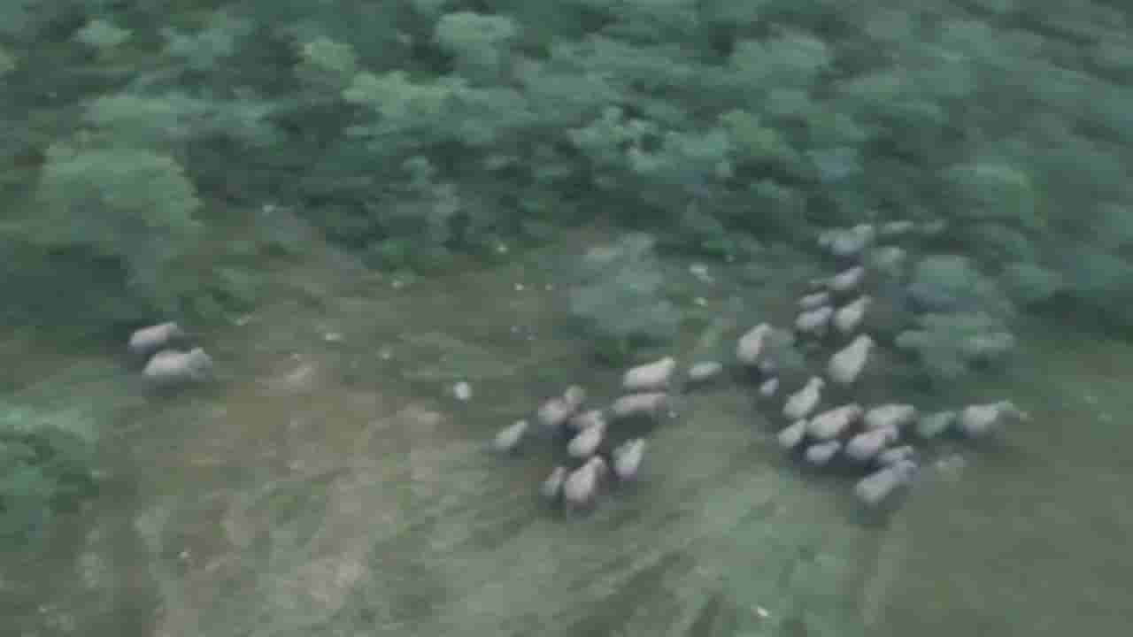Video: ಕಾಡಾನೆಗಳ ಹಿಂಡು ಡ್ರೋನ್ ಕ್ಯಾಮರಾದಲ್ಲಿ ಸೆರೆ, ರೈತ ಬೆಳೆಗೆ ಹಾನಿ